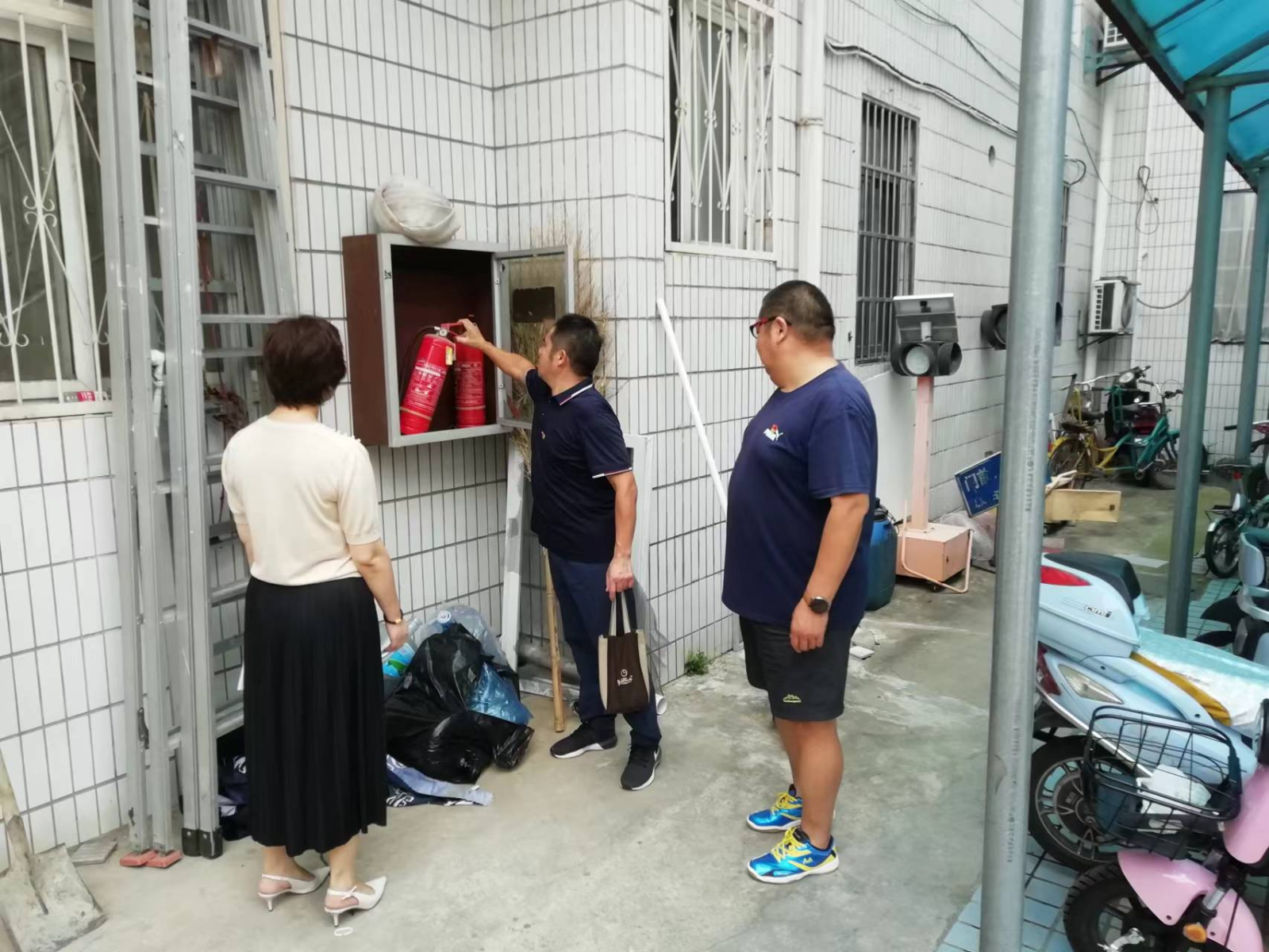 为迎接新学期开学,确保校园安全,8月24日下午,学院保卫处党支部联合总务处、水电班、学生宿舍管理员对南北区校园开展安全大检查。