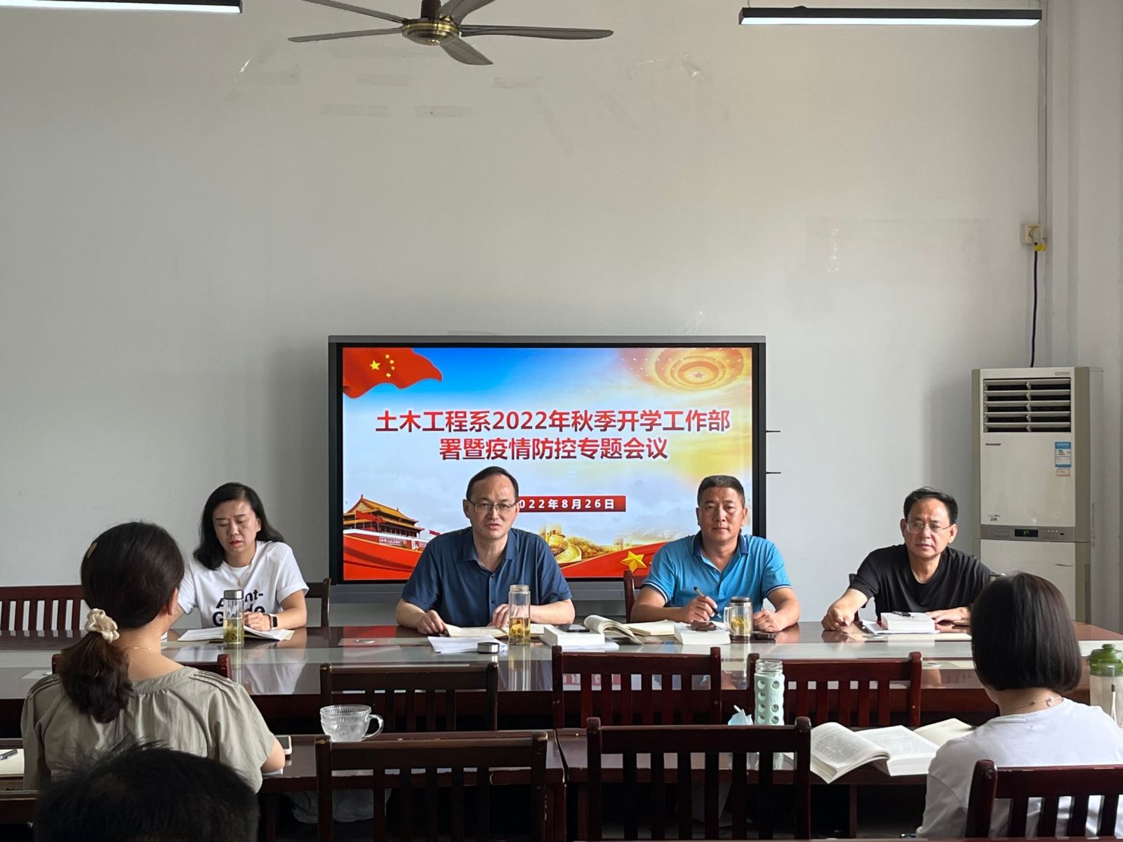 8月26日上午,土木系党总支召开2022年秋季开学工作部署暨疫情防控专题会议。系领导、副科级以上干部、支部书记参加会议,会议由系党总支书记邹建华主持。