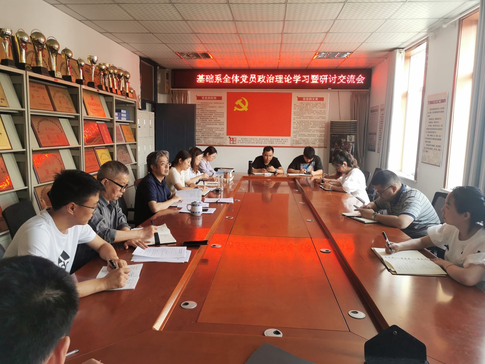 5月25日下午,基础系召开全体党员政治理论学习会暨专题研讨交流会,全体党员参加,系党总支书记邵登泰主持会议。