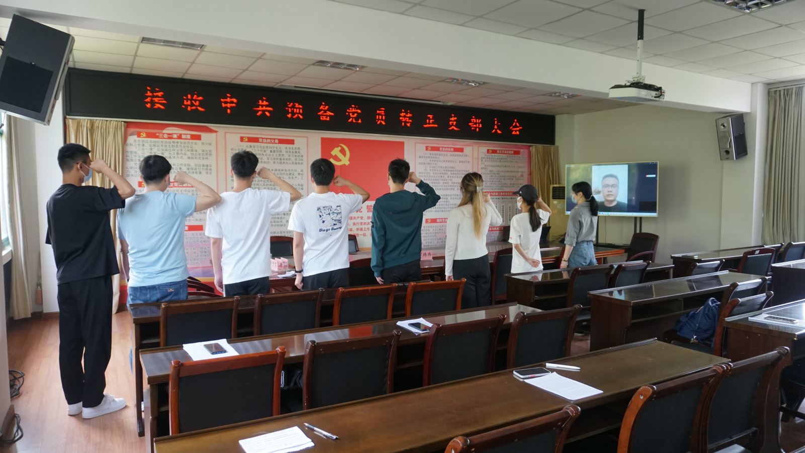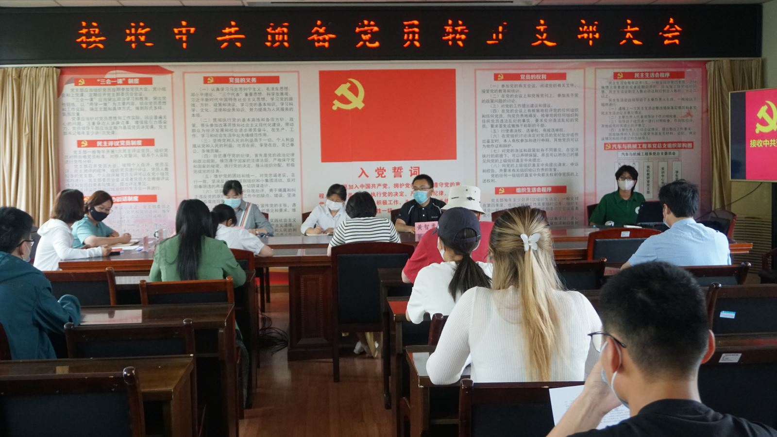 大会开始,8名申请转正的预备党员依次宣读了转正申请书,汇报自己在预备期的思想、工作、学习等情况,表达了他们想要成为正式党员的强烈愿望。随后入党介绍人结合预备党员同学的现实表现对他们进行了全面客观的评价,并表明了自己的意见。紧接着支部委员会报告对申请转正的预备党员在预备期间的教育和考察情况,提出能否转为正式党员的意见。最后经过支部大会正式党员逐一进行无记名投票表决,一致同意邹涛涛等8名同志按期转为中共正式党员。