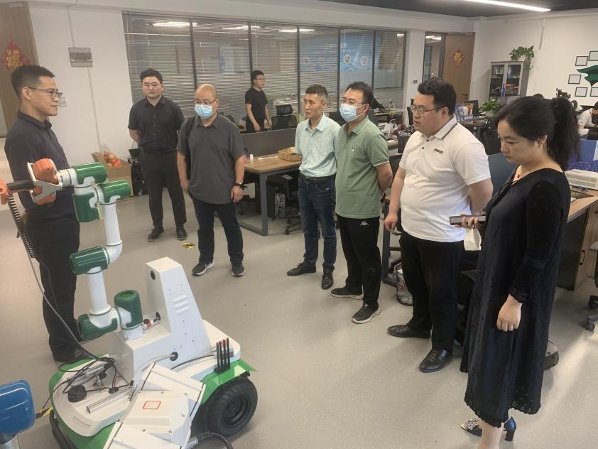 5月25日下午,汽机系主任梁洪波、副主任张峰、汽车维修教研室主任王雷、新能源技术教研室主任程章和无人机专业带头人张翼一行5人赴合肥工业大学智能制造技术研究院参观交流。合工大智能院创新创业平台负责人甄圣超、合肥粤嵌科技有限公司总经理张钊、市场副总王若浩和市场主管李乃菊等热情接待。