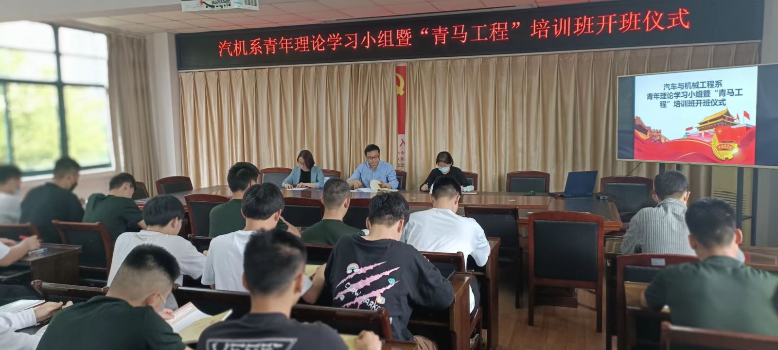 为提高团学骨干和广大团员青年的思想政治素质,培养具有坚定马克思主义信仰的团员青年,发挥学生榜样的示范作用,汽机系于4月19日下午举行青年理论学习小组暨“青马工程”培训班开班仪式。系党总支副书记(主持工作)沈劲松、系党总支副书记汪莉、青年理论学习小组及“青马工程”全体学员参会,开班仪式由系团总支书记钟飞飞主持。