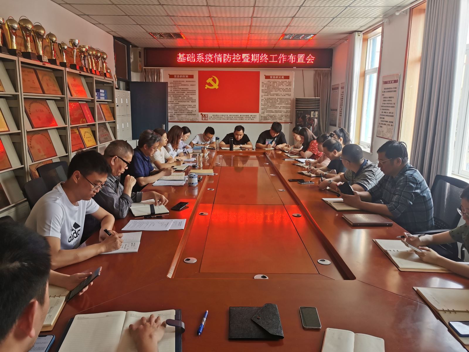 会上根据学院相关要求及当前疫情防控形势,结合基础系实际,布置、安排当前重点工作。要求做好期终及暑假期间疫情防控工作、期终复习迎考及诚信教育工作、学生安全离校工作、19级学生转段工作、招生宣传工作等。邵登泰在会上提出四点要求,一是思想认识到位,二是责任压实到位,三是工作落实到位,四是监督管理到位。(基础系 魏笑君)