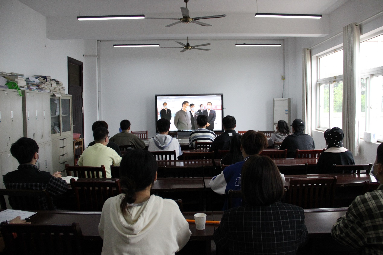 会议由张静老师主持,武庆媛老师及系学生会干部、各班团支书参加会议,一同观看了习近平总书记4月25日到中国人民大学考察调研和重要讲话的视频。