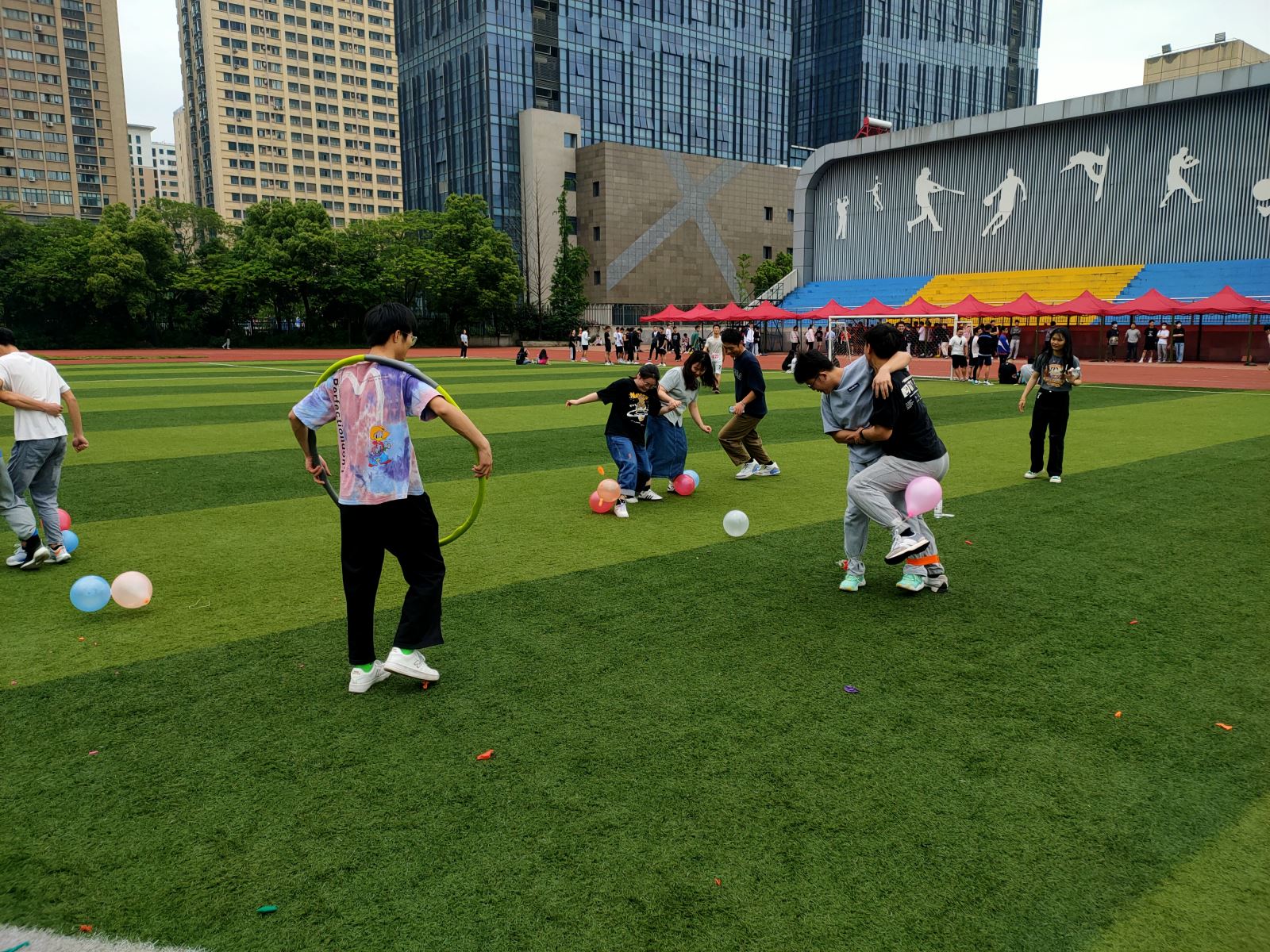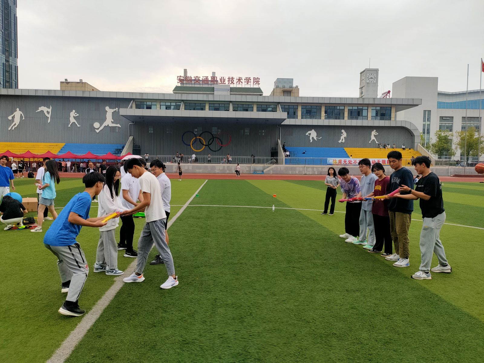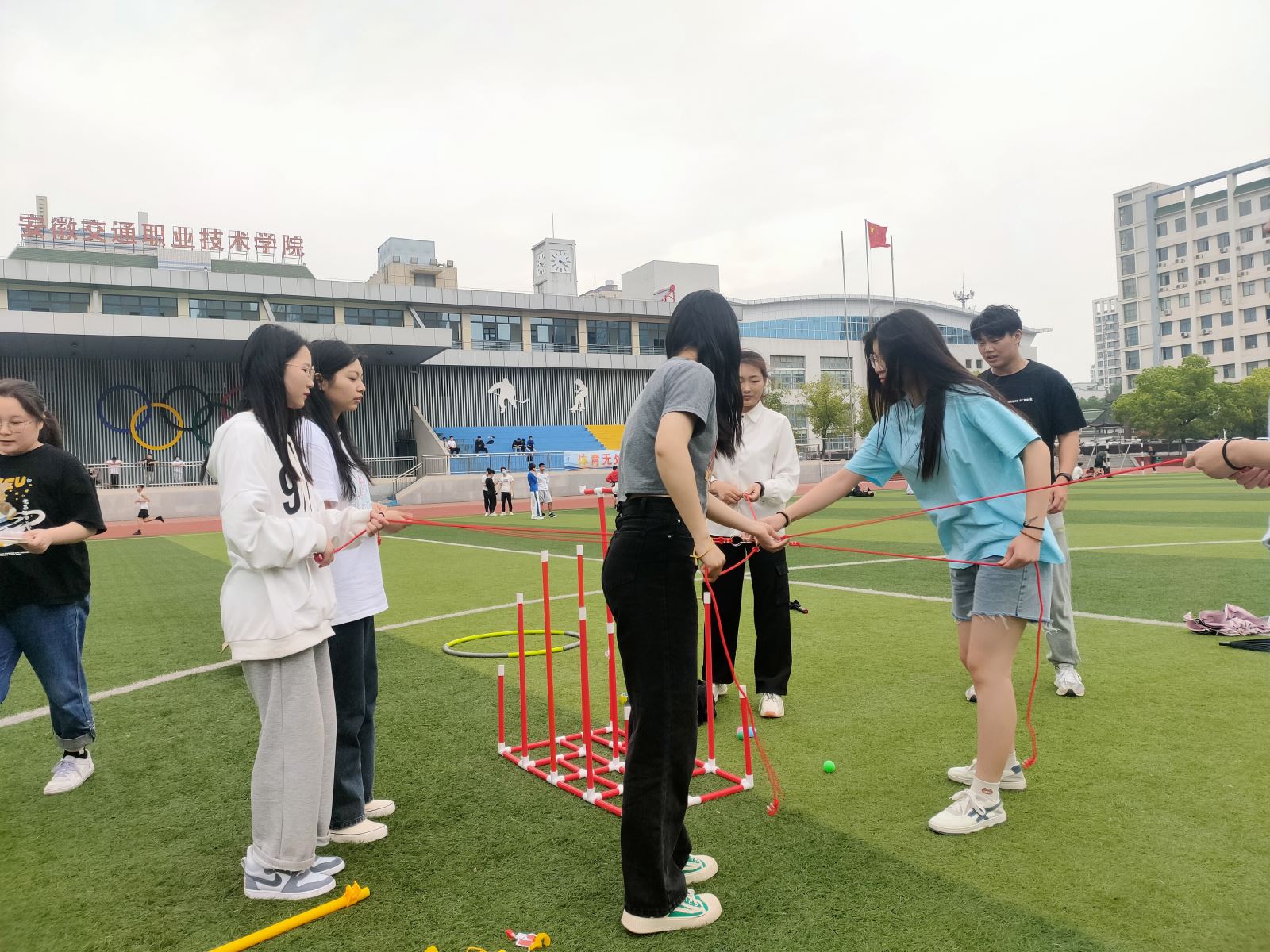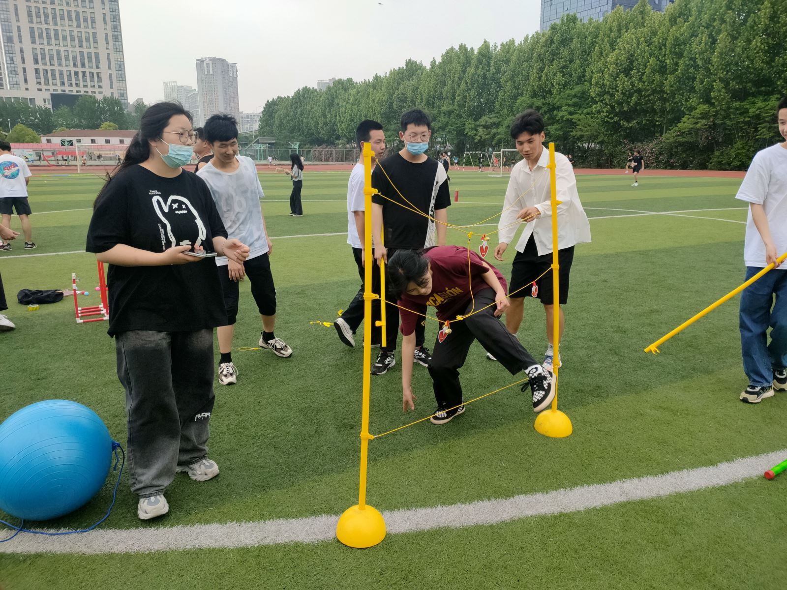 在简短的开幕后,素质拓展教育系列活动陆续开展,同学们快速破冰组团,“团队金字塔”“疯狂的大绳”“趣味接力赛”“疯狂大摆锤”......一个个兼具趣味性和挑战性的活动,让在场的每一位同学笑逐颜开,尽情享受活动带来的快乐。同学们精诚团结、紧密协作,充分发挥才智、挥洒汗水,以坚强的毅力和耐力完成了各项挑战项目。赛场外,观众的加油声此起彼伏,欢笑声络绎不绝,现场气氛活泼而热烈,充分展现了航海系团员青年团结一致、勇于拼搏的良好精神风貌,也使得青年队伍的凝聚力和团结协作精神得到进一步提升。