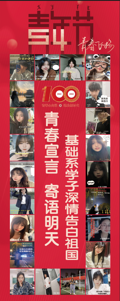 为庆祝建团100周年、迎接党的二十大胜利召开,落实“从党史学习中激发信仰、获得启发、汲取力量”的要求,基础系团总支在五四青年节之际组织开展“青春宣言 寄语明天”活动。