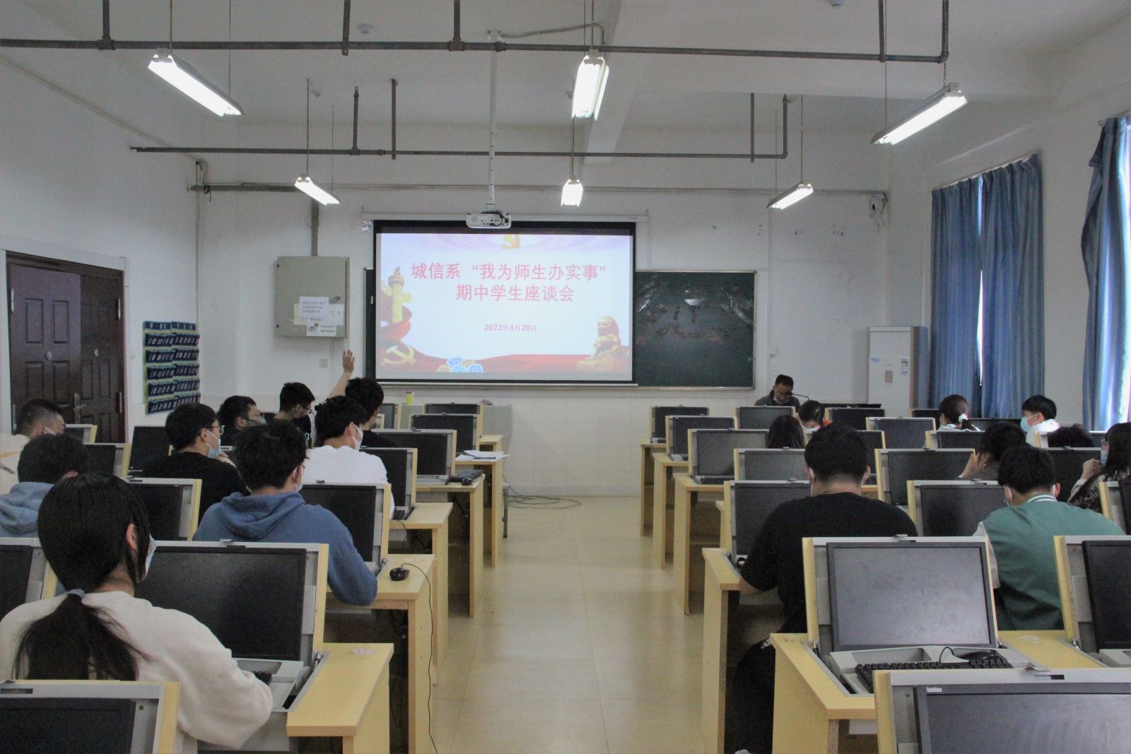 为切实做到转变工作作风,提升教育质量,城信系党总支将贯彻落实“一改两为”与疫情防控、教育教学等重点工作结合起来,温暖助力疫情防控工作。4月20日中午,城信系组织召开期中师生座谈会,系主任李锐、系党总支副书记承友明、全系教师以及2020级、2021级学生代表参加。会议由李锐主持。