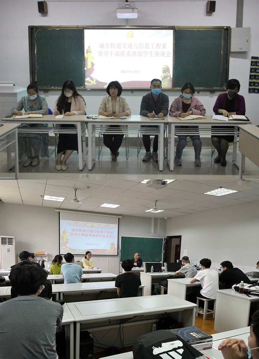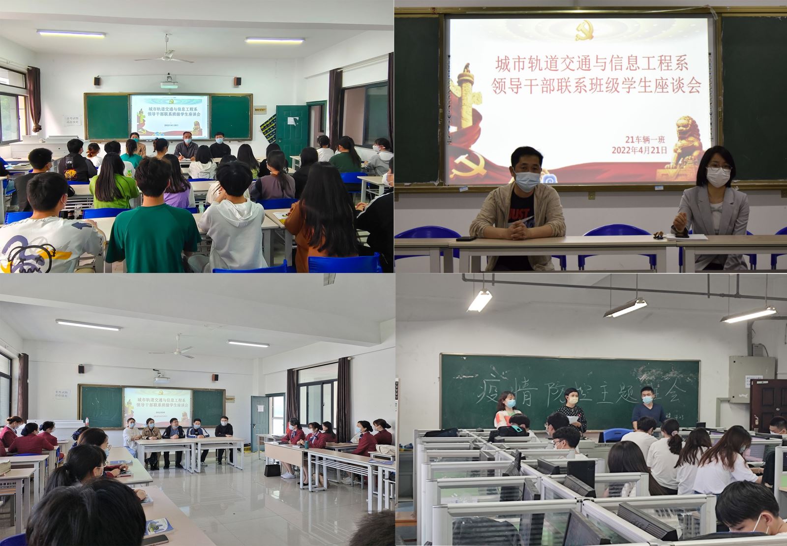 为推动“一改两为”要求落到实处,持续改进工作作风,巩固学校防疫要求,加强对同学们的思想引领,了解学生学习、生活等各方面情况,4月21日至22日,城信系召开领导干部联系班级座谈会。系党总支委员、各党支部书记、教研室主任纷纷下沉到包保班级开展交流座谈,会议由各班级辅导员主持。