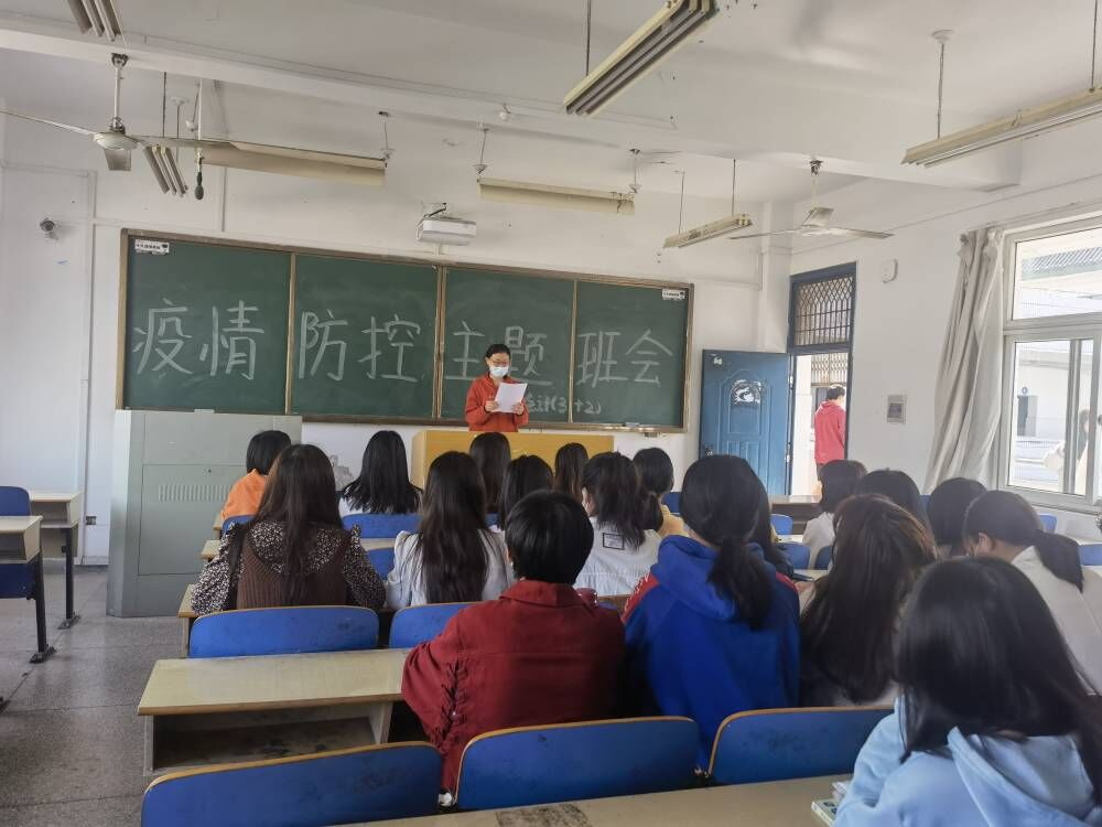 会上,各班辅导员传递了省教育工委、省教育厅召开第三次疫情防控调度视频会议精神,宣读了学院对于疫情防控的具体要求,并就如何做好自我保护和防范新冠病毒对同学们进行详细讲解宣传,要求同学们在日常学习和生活中严格遵守疫情防控要求,“非必要不离校”,切实增强防范意识。