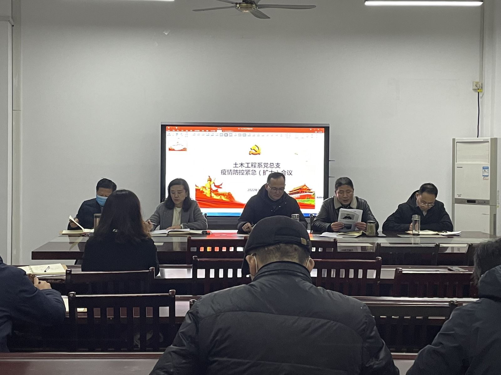 3月21日晚,土木工程系党总支召开疫情防控紧急(扩大)会议。系党总支书记邹建华主持会议,系领导、副科级以上干部、各党支部书记参加会议。
