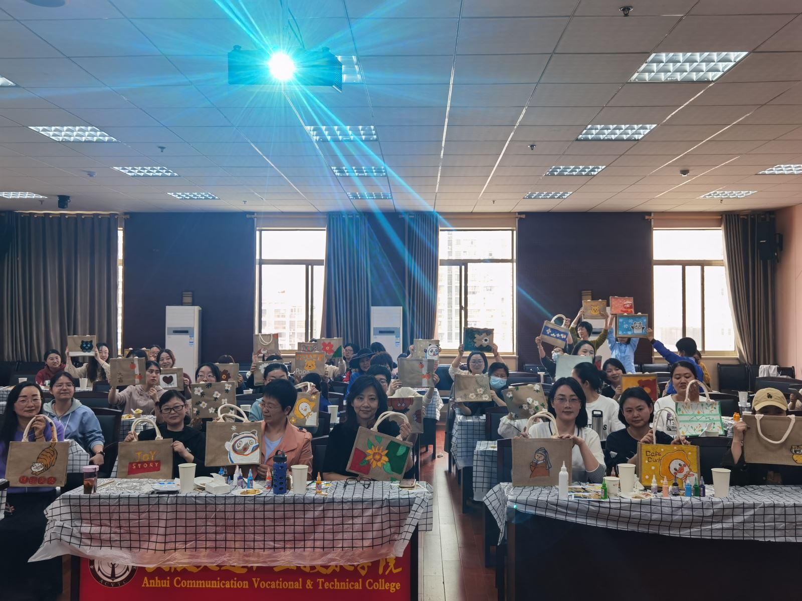 为庆祝第112个“三八”国际劳动妇女节,丰富女教职工文化生活,倡导健康生活理念,促进教职工沟通交流,营造昂扬向上的的校园文化,3月12日下午,院工会、院女教职工委员会举办“匠心巧手 美丽绽放”DIY麻布包活动。