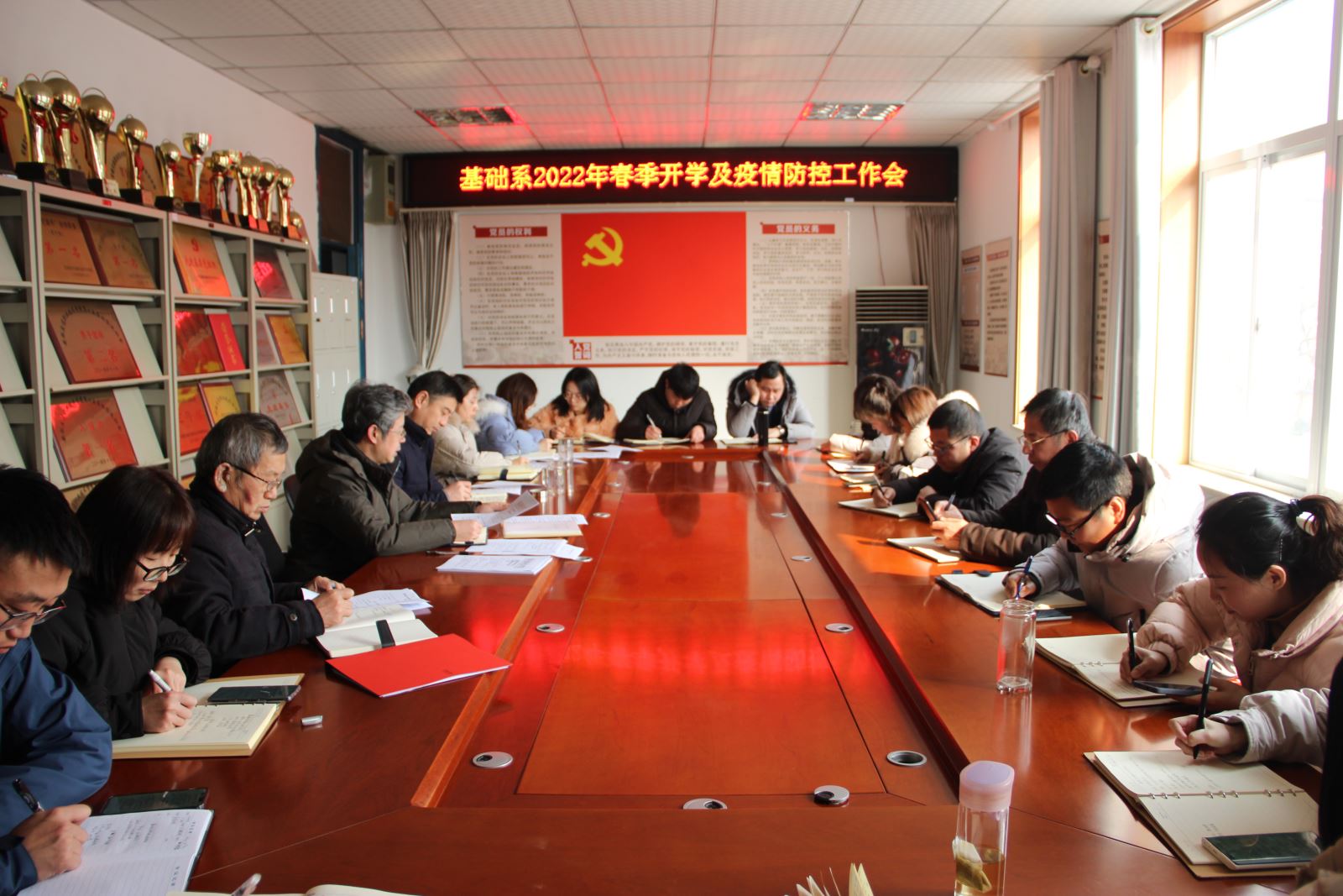 为提前谋划新学期工作,促进各项工作顺利开展,2月23日下午,基础系召开全体教职工会议。系党总支书记邵登泰主持,全体教职工参加。