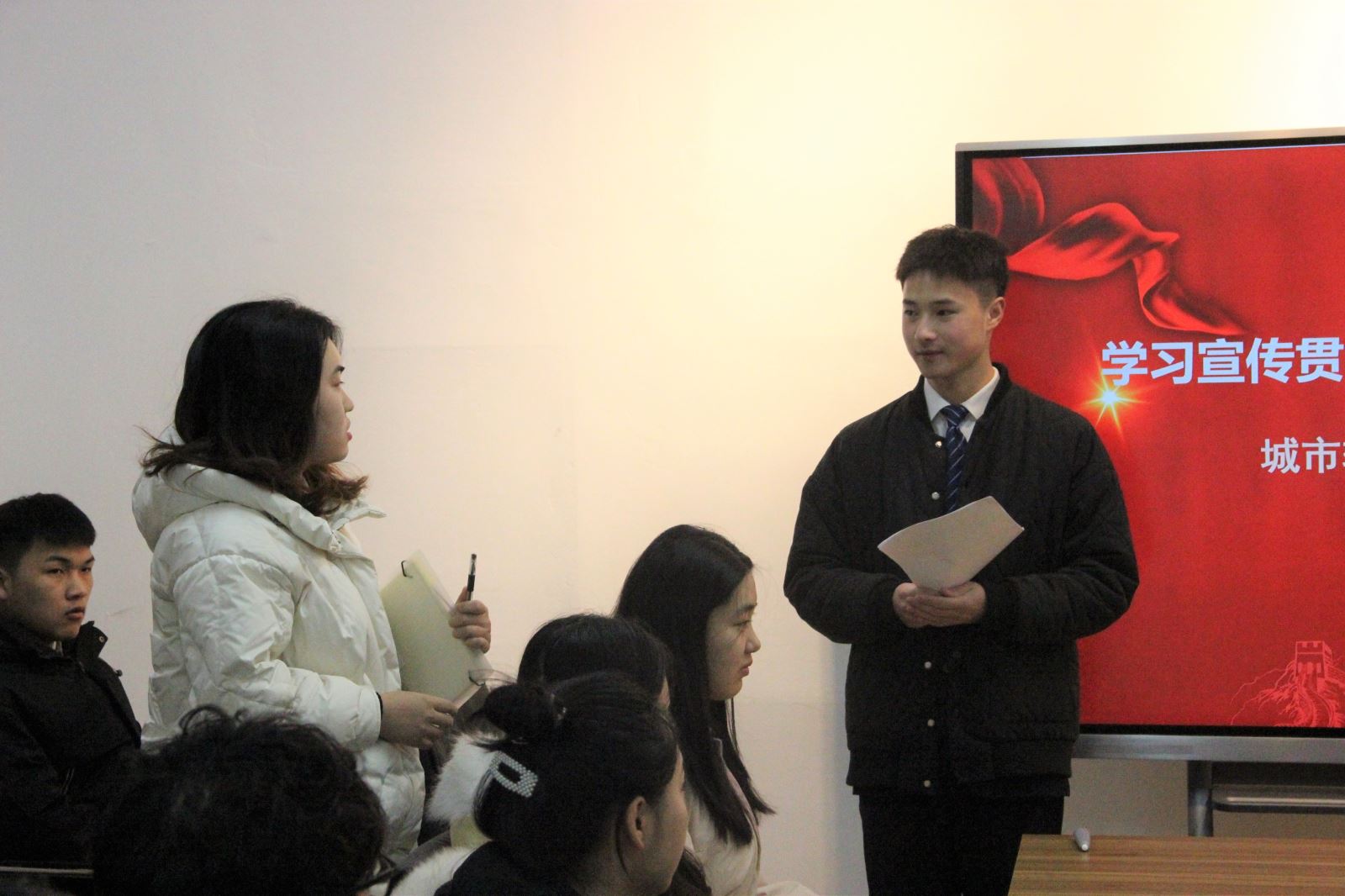 为进一步学习贯彻党的十九届六中全会精神,引领大学生深入了解新时代党的理论政策,做到学思践悟,知行合一。 12月25日上午,城信系组织学生骨干于系党员活动室开展党的十九届六中全会精神宣讲活动,系学生代表参加。