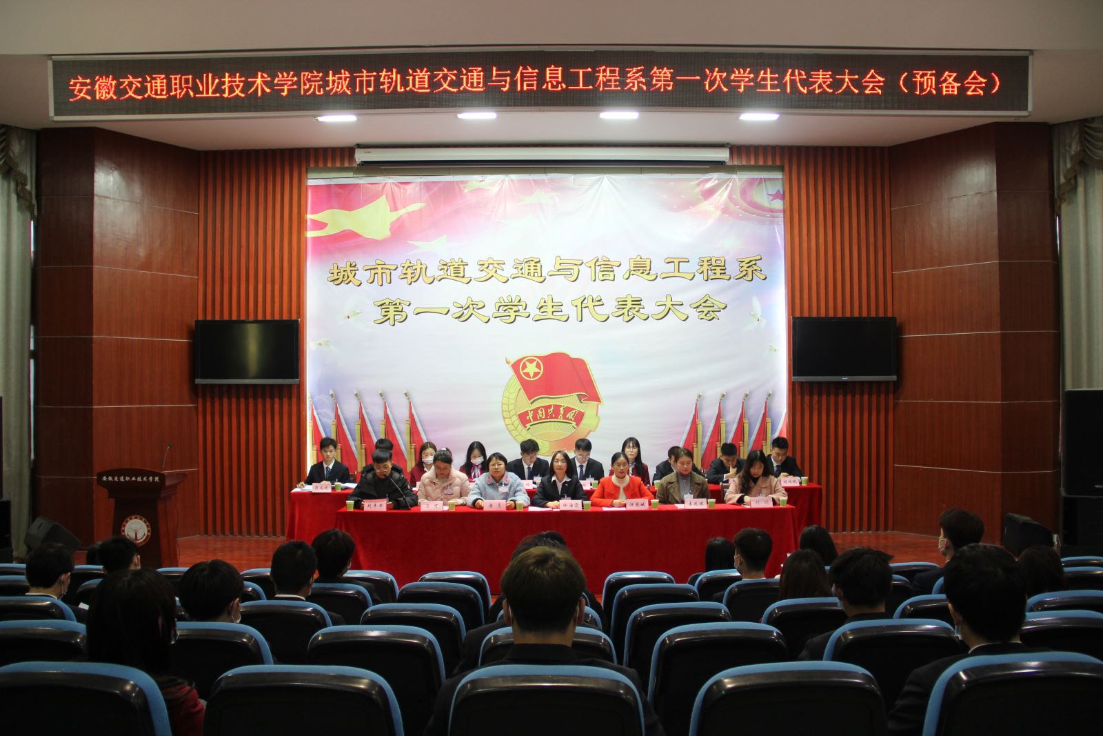 为深入贯彻落实全国高校思想政治工作会议和共青团中央、教育部、全国学联联合下发的《关于推动高校学生会深化改革的若干意见》和《加强和改进新时代学联学生会工作实施方案》文件精神,强化学生组织自我教育、自我管理的能力,12月8日上午,城市轨道交通与信息工程系第一次学生代表大会在学院北区八角楼学术报告厅召开。系党总支书记汪倩、系党总支副书记承友明、部分学管老师、85名学生正式代表和21名列席代表参加本次学代会。会议由城信系团总支负责人徐海霞主持。