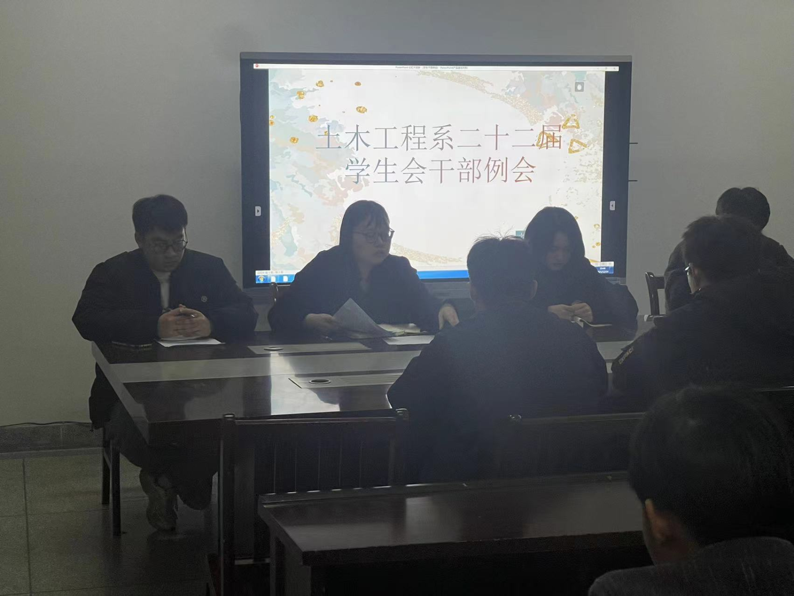12月14日晚,土木系在北区教学楼三楼会议室进行了第二十二届团总支学生会干部例会。武庆媛老师及全体二十二届学生会干部参加本次会议。