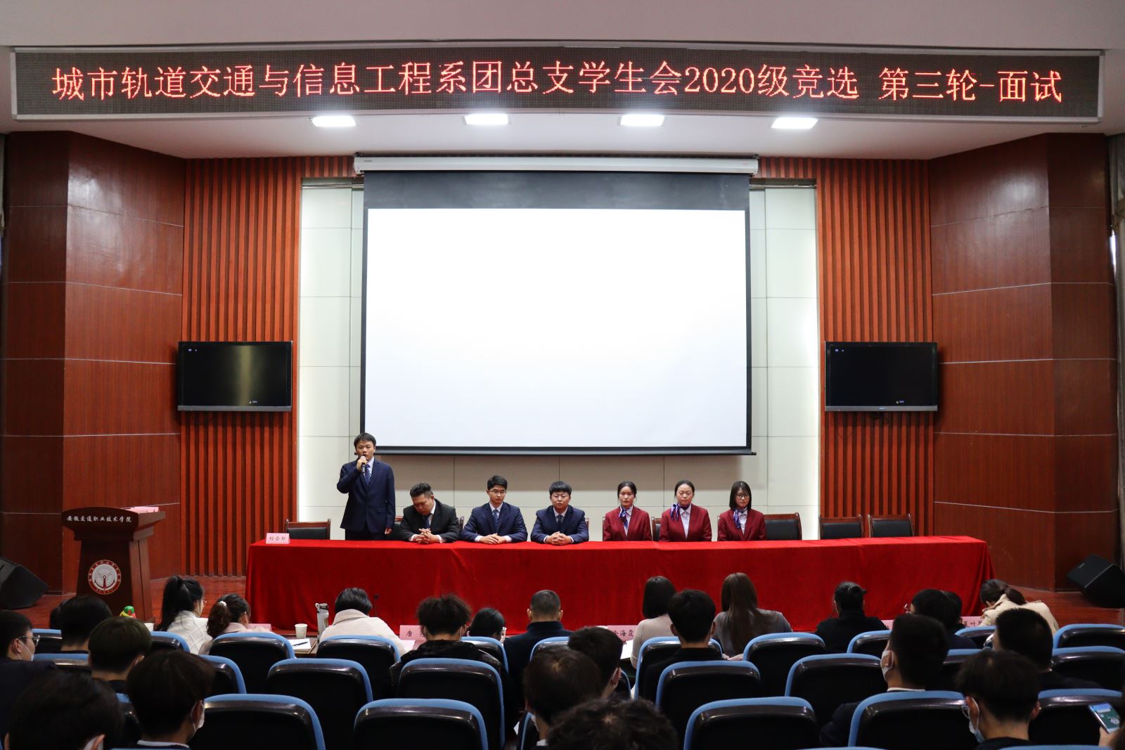 竞选过程中,同学们介绍了各自的基本情况、对工作岗位的认识、竞选原因以及对未来工作的设想,他们仪态端庄大方,畅谈自身丰富的学生工作经验,用实际行动证明了任职期间的努力成果,积极回答老师的提问,展现出了卓越的风采,经过激烈的角逐,共拟定了30名试用人员,后期将进一步考核。