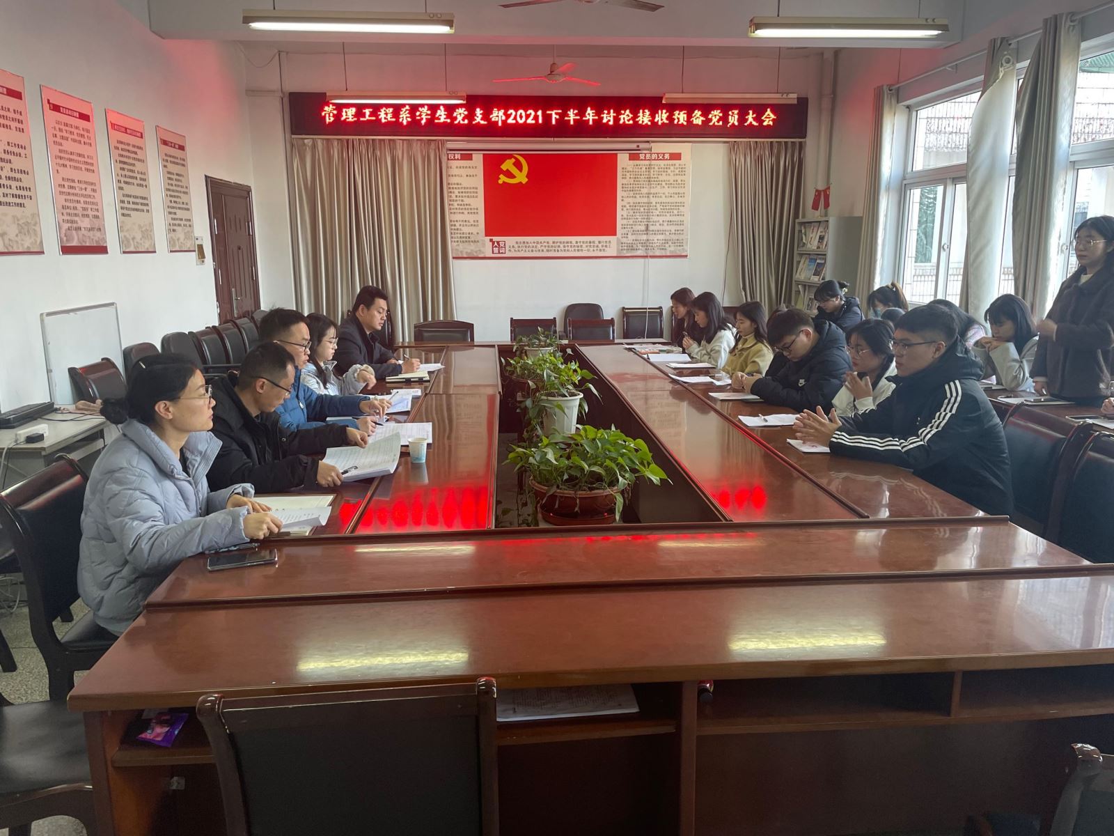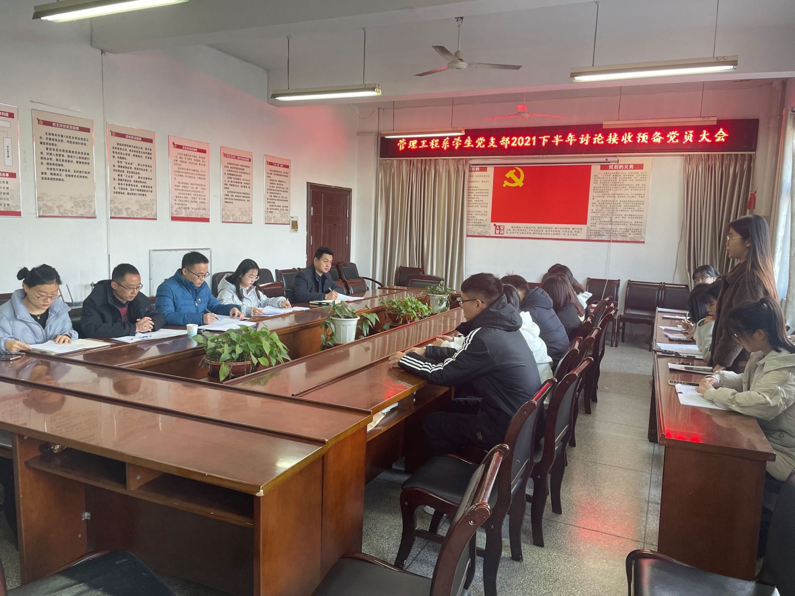 为进一步提升组织凝聚力,扩大党员队伍,推进党员发展工作,11月24日下午,管理系学生党支部在系会议室召开谈论接收预备党员支部大会。管理系党总支副书记陶琪、学生党支部全体教师及和14名发展对象参加会议。