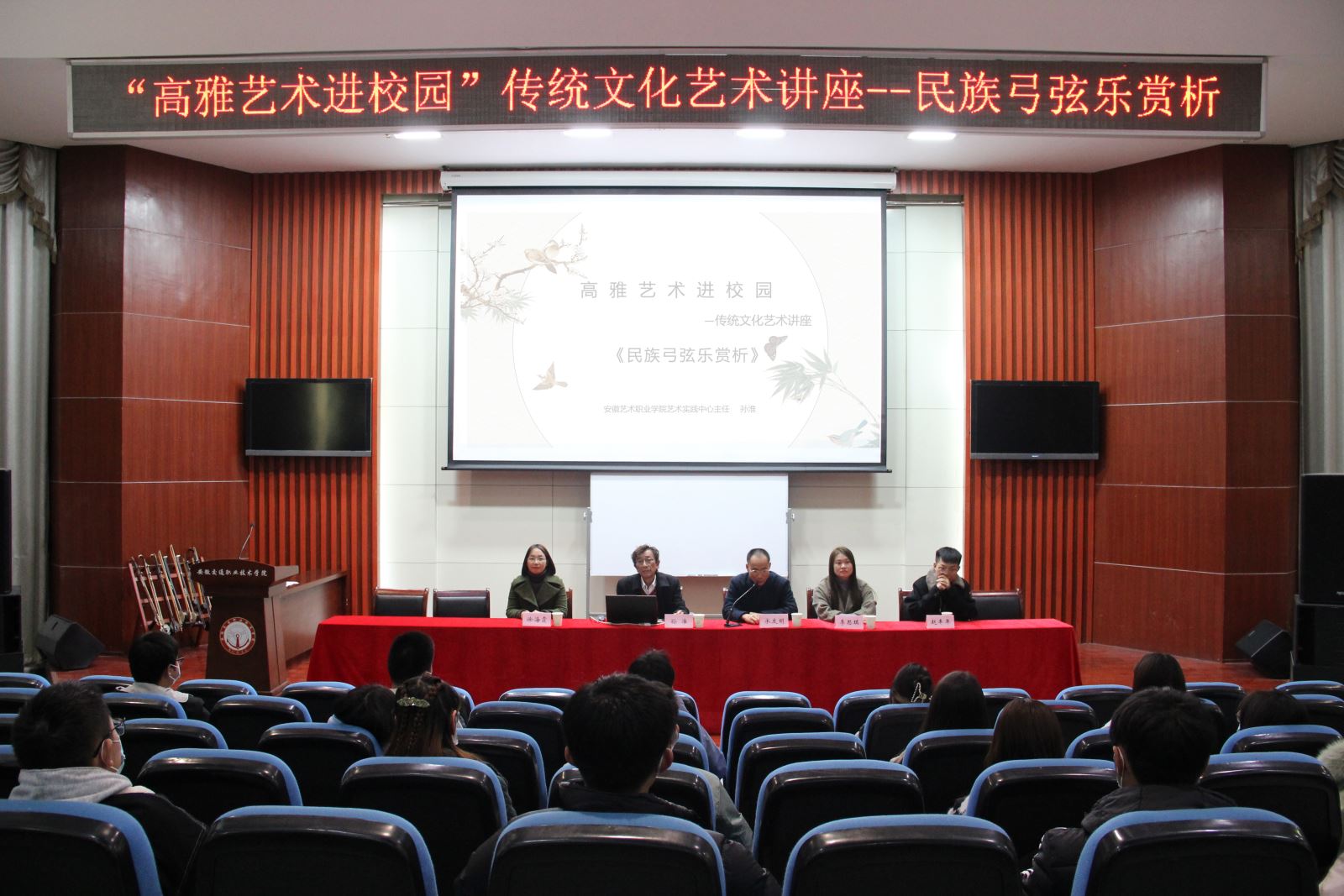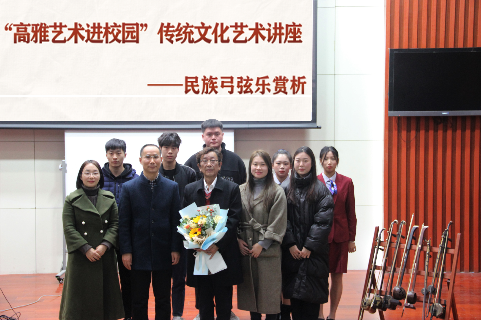 “原以为讲座会很枯燥,想不到有这么多表演和视频欣赏,像一场音乐会,”学生丁晓薇说。此次专题讲座,为广大师生提供了体验民族器乐的平台,引导大家与艺术相伴、与高雅同行,在品味高雅艺术的过程中,领略高雅艺术之美、感受传统文化之韵,有利于普及民族器乐,传承民族文化,助力民族复兴。(城信系 杨玉菡)