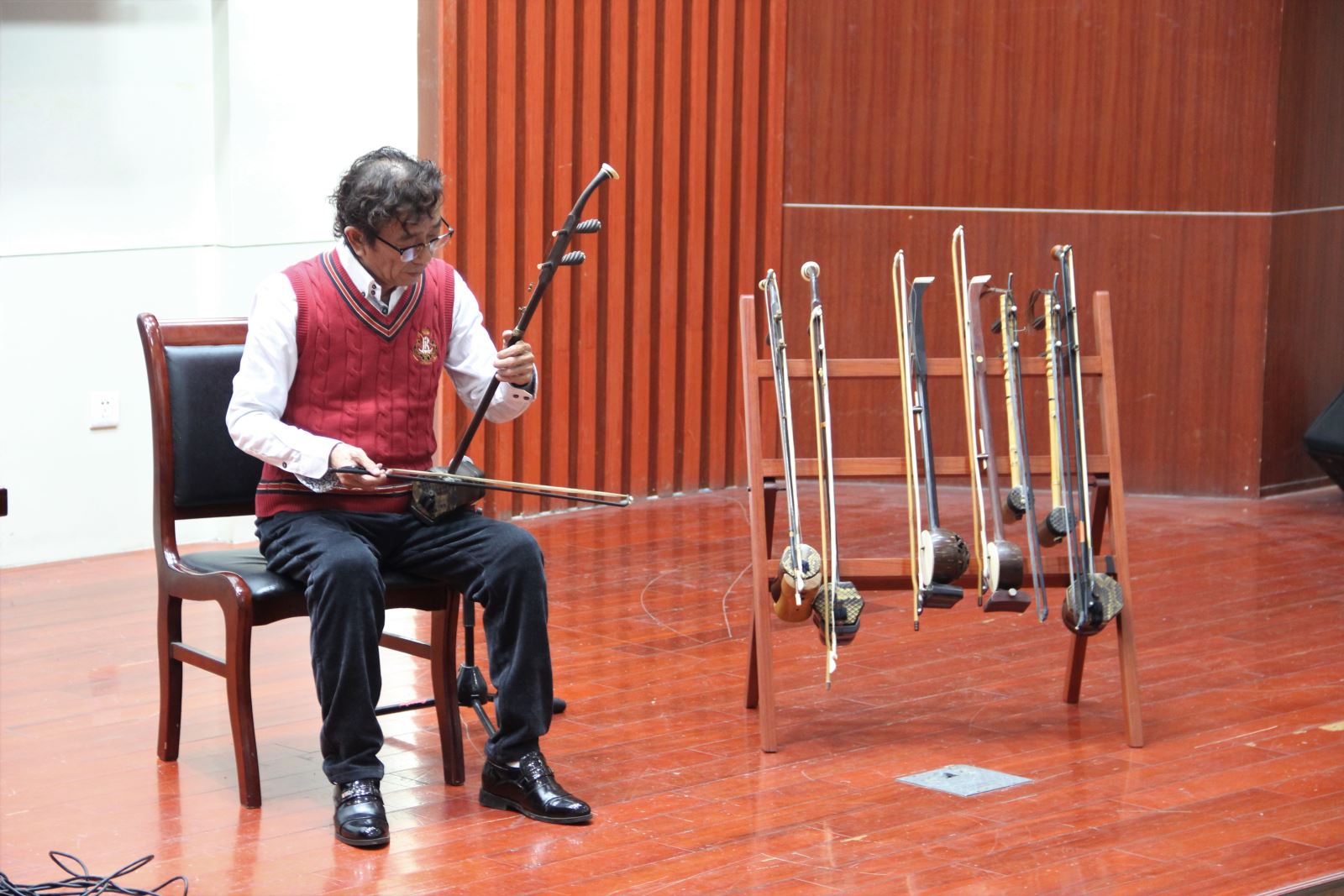 孙淮以“中国传统民乐的发展历程”为脉络,阐述了民族弓弦器乐在历史发展进程中的兴衰和变革,孙淮一边详细讲解中国民族弓弦乐器的结构和简单技法,一边为学生带来经典的民乐作品赏析,引领在场听众感受民族传统音乐的艺术魅力。他鼓励学生在学习专业知识的同时,要加强艺术修养,把人文与技能融合,让高雅艺术常伴左右,从中华优秀传统文化中汲取营养,使自身的审美情趣、艺术修养得到更好地提升。