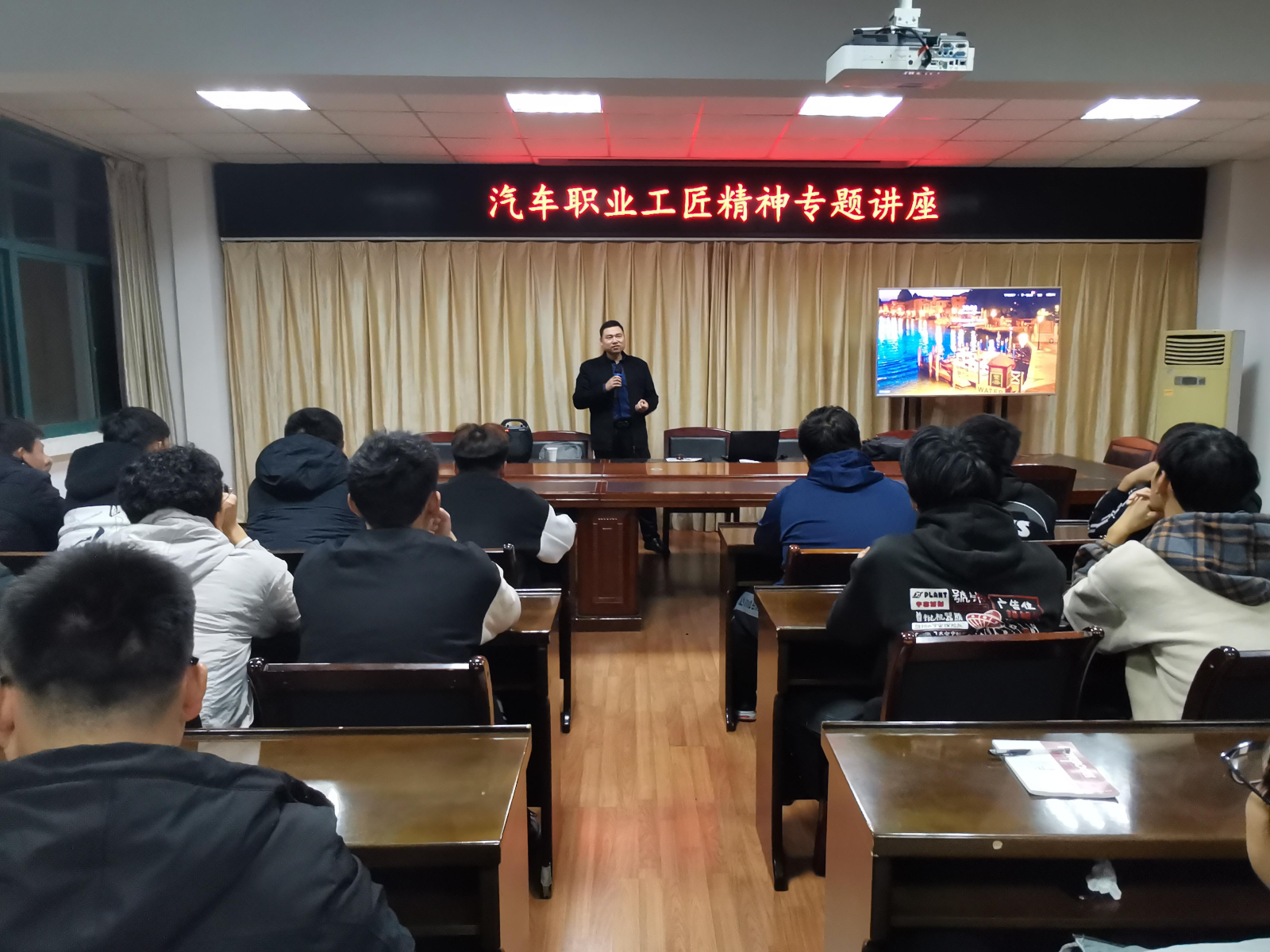 11月25日,汽机系特邀安徽水利水电职业技术学院汽修教研室书记段伟开展以“汽车职业工匠精神”为主题的讲座,2021级汽修专业新生参加学习。段伟从我国汽车工业创建初期困难、引进外资合作发展汽车工业、民族汽车品牌快速成长、中国制造2025等方面,深入浅出的介绍了我国汽车工业60多年的艰辛历程,形象生动地引入雷锋式汽车工匠等多个感人故事,真实展现了前辈汽车人不怕困难、吃苦耐劳、奋斗拼搏的工匠精神。启示同学们要热爱祖国、热爱民族品牌、热爱汽车行业、追逐工匠精神,勉励同学们要树立正确的理想信念和人生目标,用自己的行动和意志战胜困难,今后在工作中争做一名优秀的汽车工匠。