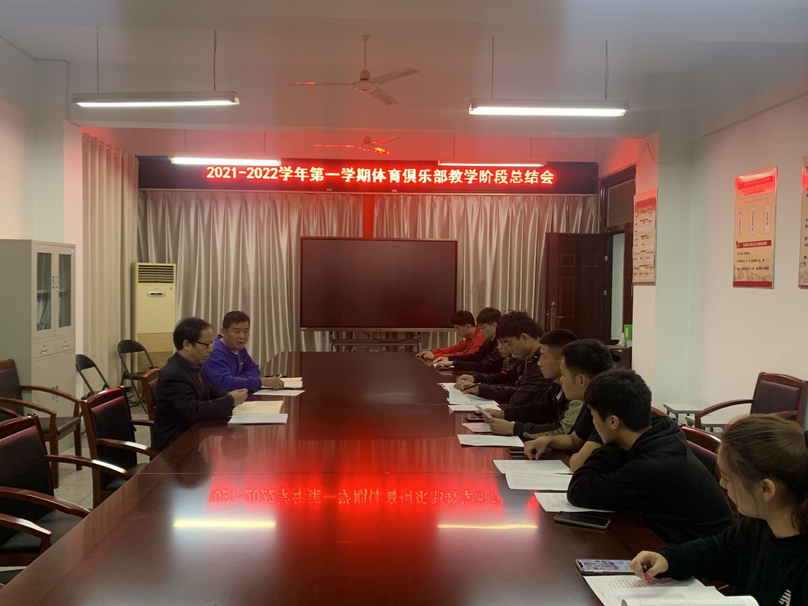 10月27日晚,在系会议室召开了俱乐部教学阶段总结会,体育教研室主任万一春主持会议,系党总支副书记、副主任(全面主持工作)昌希灿参加会议并听取情况汇报、与各俱乐部负责人进行了交流。万一春首先介绍了俱乐部教学改革的基本情况,各俱乐部负责人分别汇报了俱乐部运行管理情况、需要提高或解决的问题等。