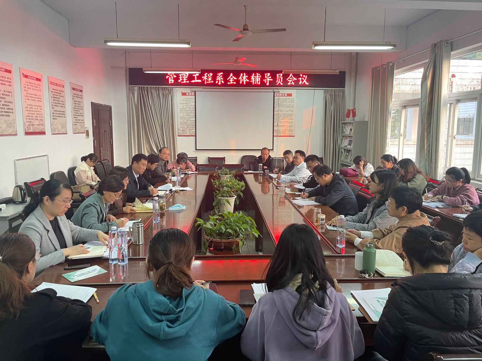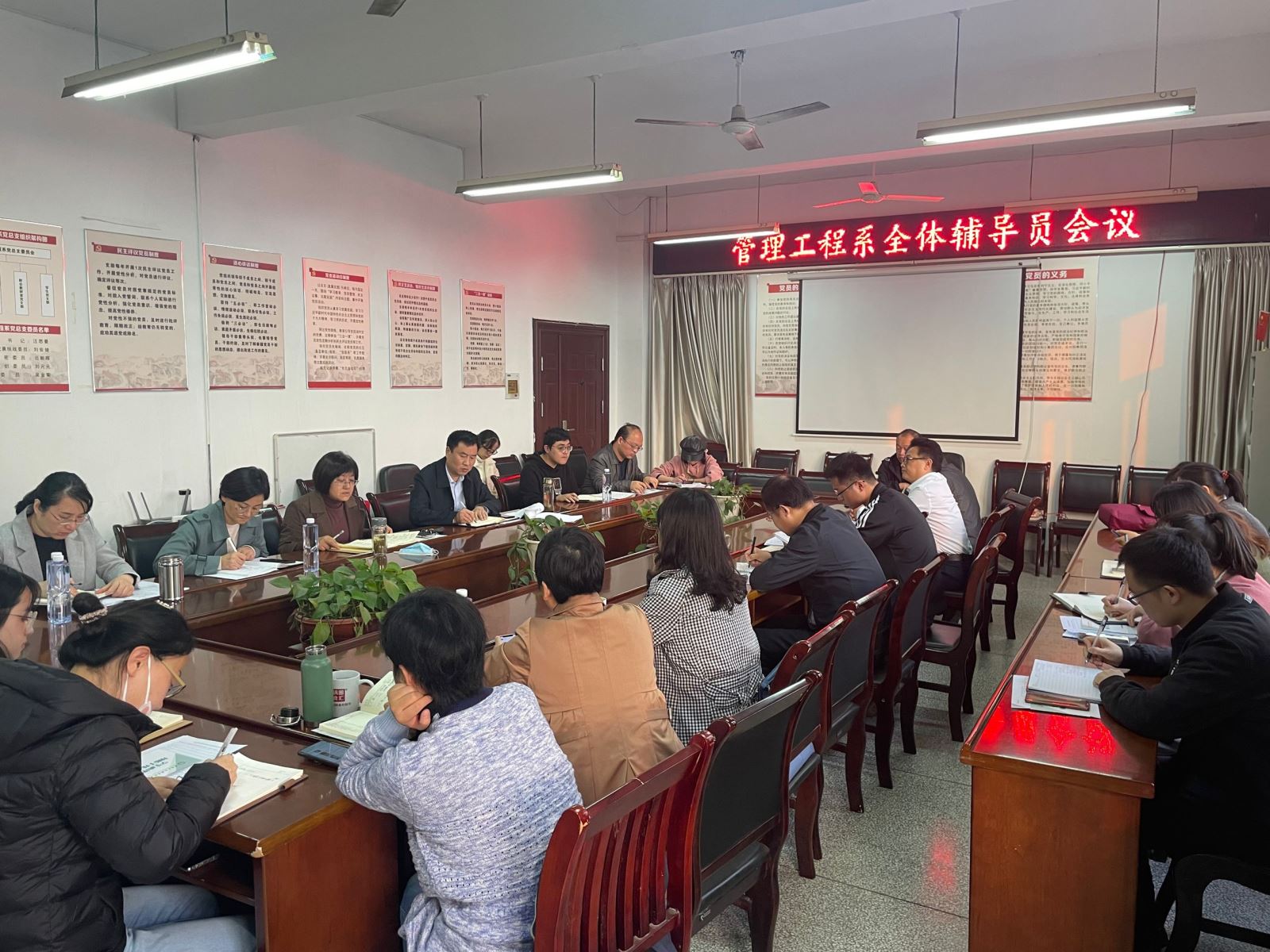 10月27日,管理系在系会议室召开全体辅导员工作会议,全体辅导员以及系学生管理办公室老师参加,会议由系党总支书记汪思曼主持。