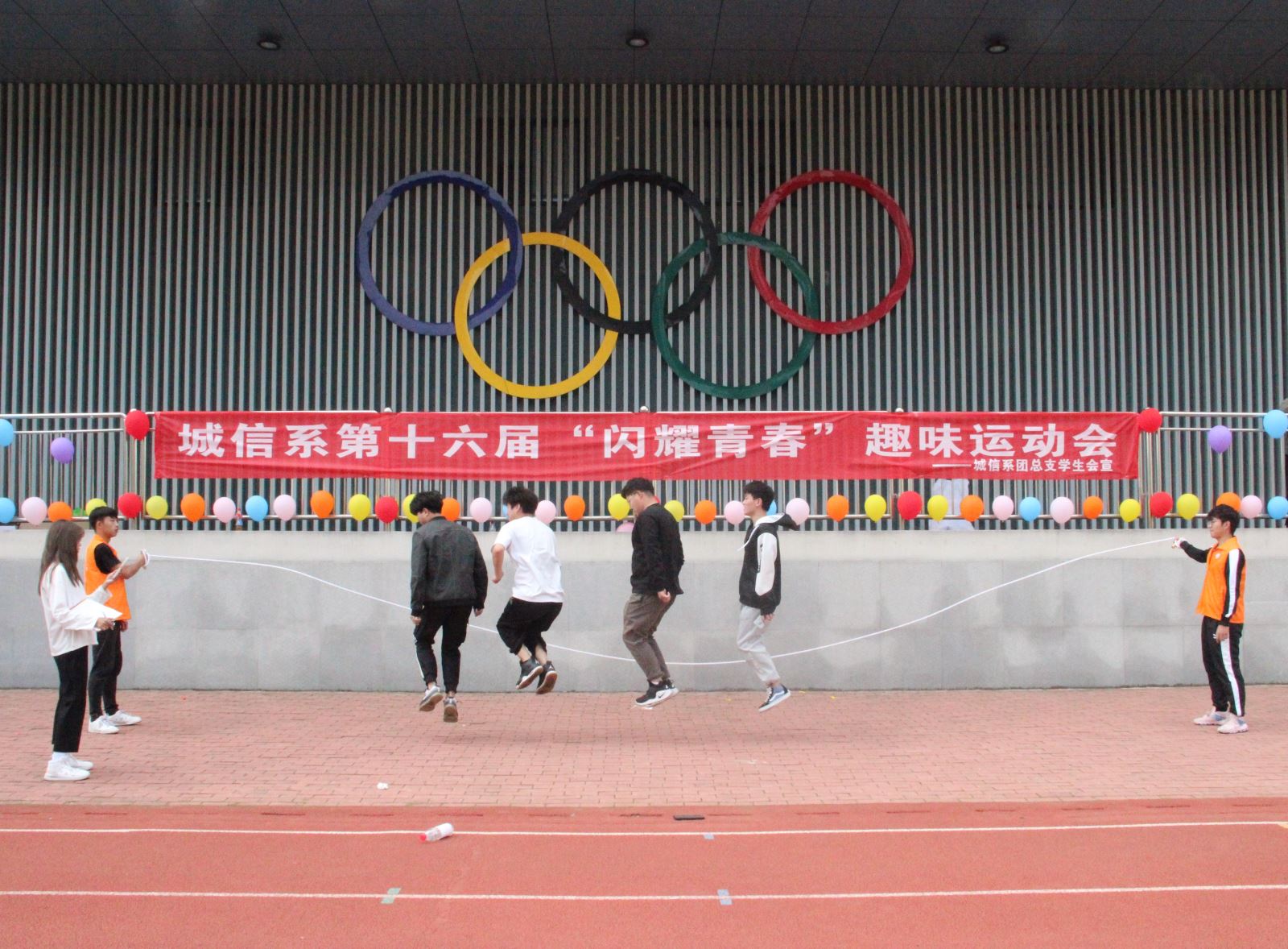 本次运动会比赛项目趣味十足、竞技性强份,设置了个人赛和团体赛。个人赛有男子,女子定点投篮、踩气球、激情碰撞球;团体赛有企鹅漫步、跳大绳、五人六足、逃出生天、环环相靠、撕名牌。其中在个人赛中参赛选手都表现出极佳的运动状态,挥洒青春的活力。在团体赛中,大家都团结奋斗、努力拼搏,共同展现城信系学子青春风貌。