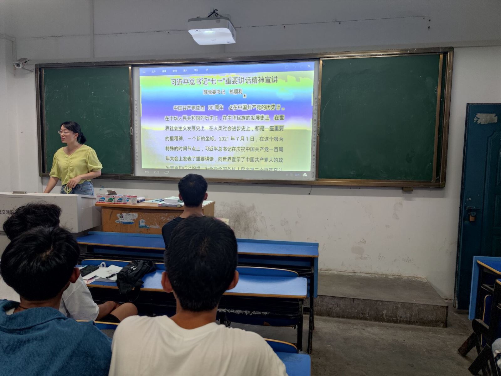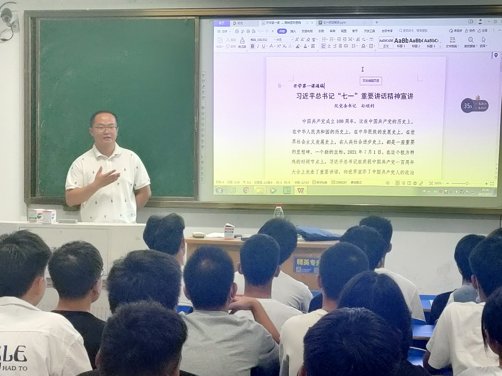 9月12日,各新生班辅导员在班级给学生开展“开学第一课”,提醒学生在当前常态化疫情防控下,要严格请销假手续,遵守纪律,不能掉以轻心;注意财产和人身安全;尽快适应新的学习和生活习惯;带领学生学习了习近平总书记七一讲话精神,教育学生要坚守信念、践行初心、担当使命、不怕牺牲,发挥自身的才智,为国家的发展贡献力量。
