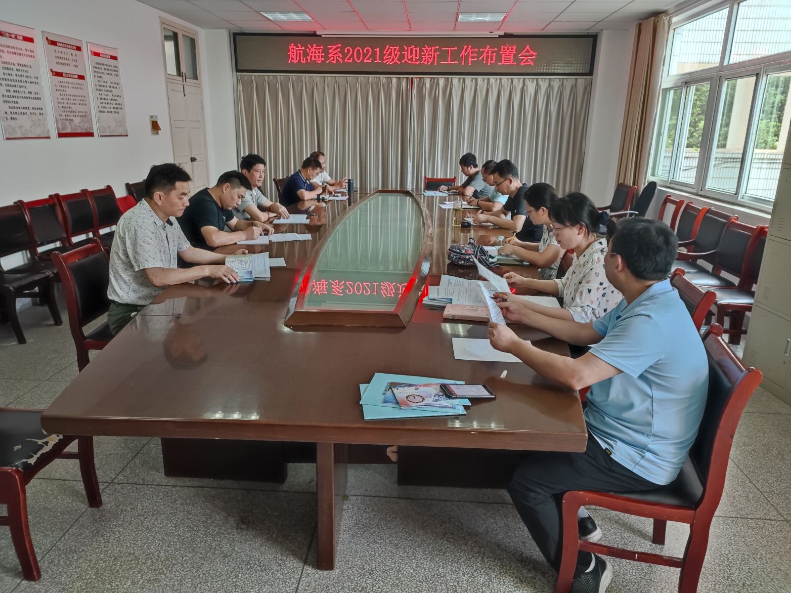 为在新生开学前安排好迎新工作,9月9日上午,航海系在会议室召开2021级迎新工作布置会,系党支部书记陶权、副主任(主持工作)刘超、副主任王在高出席会议,教研室主任、教学秘书、学生管理人员、全体新生班辅导员参会。会议由陶权主持。会议确定了迎新当天的具体流程,向辅导员发放了系入学教育安排表和温馨提示,要求各位辅导员早早到岗,迎接新生。陶权指出,迎新工作意义重大,是新生入学面临的第一站,辅导员要细化各项事务,层层落实责任;要牢记立德树人重任,身正为范,展现良好的形象。刘超对辅导员提出三点希望,一是希望辅导员以“心”迎新、做好新生们信任的“第一位大学老师”,服务好新生家长认识学校的第一站,站好迎新工作的第一线,扎牢新生思政教育的第一环。二是希望辅导员提前了解学生的基本情况,熟悉学生特点,确保迎新工作做到操之有度,心中有方。三是希望辅导员抓好新生返校前、报到时、入学后各环节的工作,既要严格落实疫情防控要求,又要做到热情、温暖,确保迎新工作安排、平稳、有序、温馨。