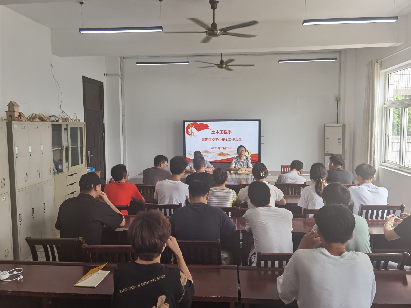 7月16日上午,土木工程系在系会议室召开暑期留校学生安全教育工作会议。会议由汪爱娥主持,系党总支副书记朱蓉出席会议,土木系参加本科班考研、技能大赛及体育训练等留校学生参加了会议。