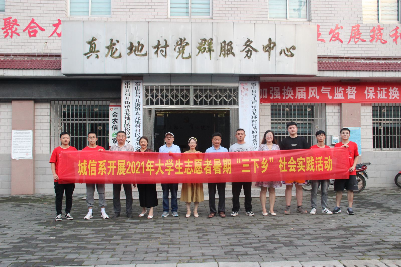 为庆祝中国共产党成立100周年,引导和帮助广大青年学生上好与现实相结合的“大思政课”,在社会课堂中受教育、长才干、作贡献,在观察实践中学党史、强信念、跟党走,努力成为担当民族复兴大任的时代新人,以实际行动把爱国情、强国志、报国行自觉融入新时代追梦的新征程,8月2日至3日,城信系开展了以“永远跟党走 奋进新时代”为主题的2021年大学生志愿者暑期文化科技卫生“三下乡”社会实践活动,奔赴安徽省六安市与儿街镇真龙地村,结合新时代文明实践,深入农村围绕党史学习、理论宣讲、乡村振兴、志愿服务等方面开展多种形式的实践活动。