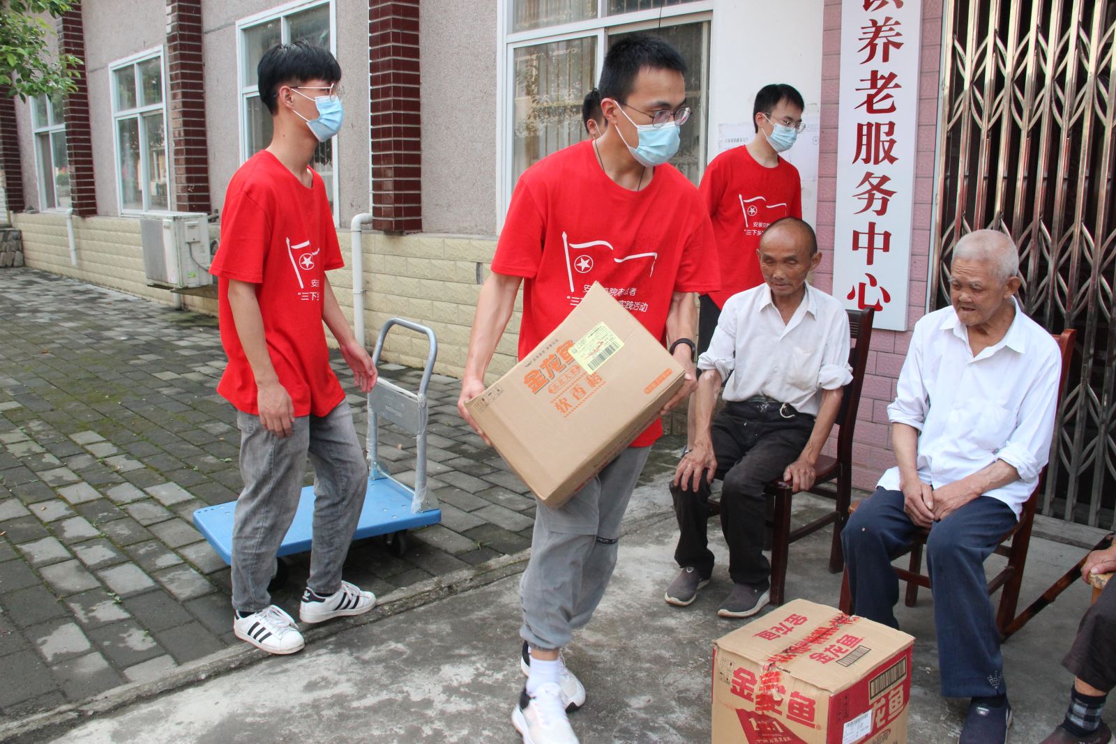 城信系三下乡先锋队来到真龙地村党群服务中心,了解基层社区的相关工作。经过当地工作人员的讲解,同学们了解到宣传工作是社区工作中一项非常重要的内容,将国家的政策、有用的信息准确的传达给每一个居民,是做好社区宣传工作的重要目标。就如何做好宣传工作,同学们和社区工作人员进行了交流和探讨。随后,师生一行来到了真龙地村里的敬老院,走访慰问当地五保老人,为他们送去了粮油、水果等生活物品,为老人们收拾整理房屋,向他们普及健康知识、增强健康意识、真正做到心系村民,为村民办实事。