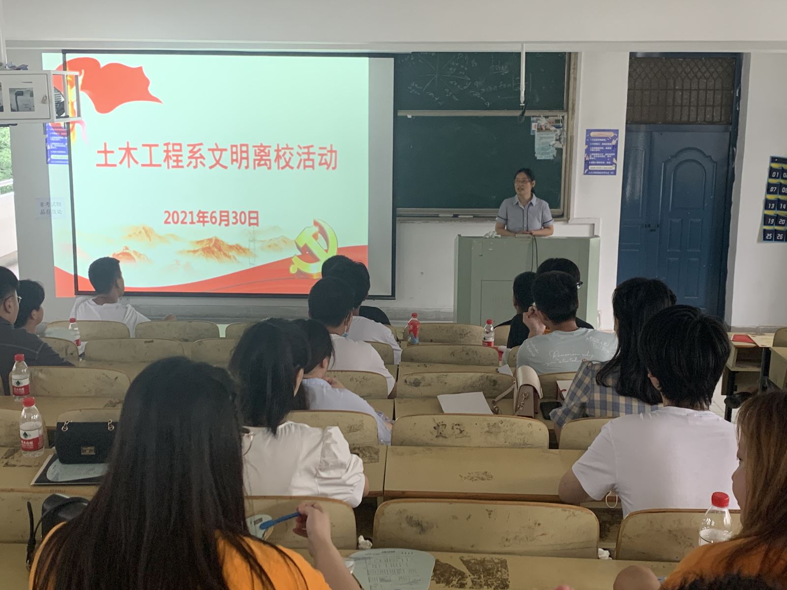 各毕业班级辅导员通过线上线下方式开展文明、安全离校、爱国教育及生源地贷款毕业生诚信教育等主题班会,办理图书清退、做好各类费用清算,组织宿舍清理,集体办理离校清单。(土木系 张晨潇)