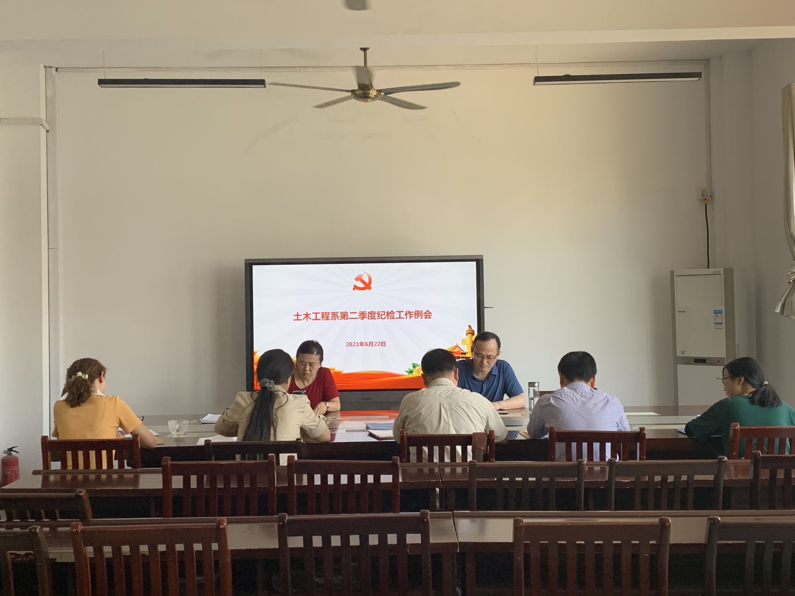 6月22日上午,土木系召开第二季度纪检工作例会,会议由系党总支纪检委员朱蓉主持,系党总支书记邹建华,各党支部纪检委员参加会议。