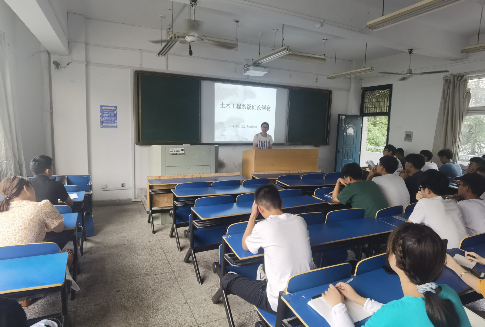 6月23日下午,土木系召开19级、20级在校班级班长例会,会上系学管汪爱娥老师对各班班长强调了安全稳定的重要性,要求各班积极发挥班干部作用,协助辅导员及时查看学生宿舍的安全、生活、卫生等情况,关注各宿舍成员的思想动态,有任何情况要第一时间向辅导员报告。