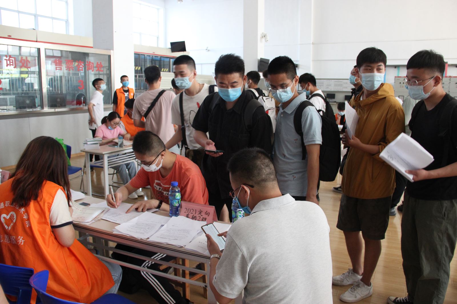 在迎新工作中,城信系积极落实学院关于新冠肺炎疫情常态化防控工作的各项要求,力求做到尽善尽美。报道当日早上6点50分,在各新生测温点、接待服务点,引导小组以及后勤服务小组成员早已各就各位,细心、热心、耐心地迎接每一位报道学员。