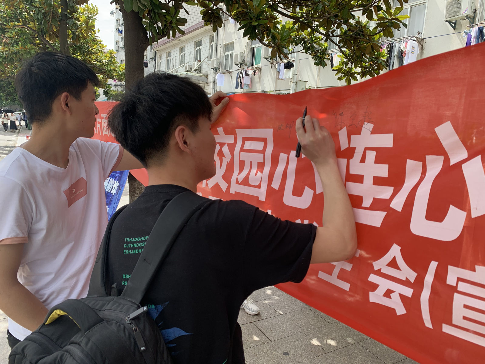 网络防诈骗签名活动:5月27日,土木系生活部将征集到的防诈骗标语打印制作成横幅,进行防诈骗知识宣传和签名活动,同学们纷纷在横幅上留下自己的签名,也将防诈骗意识刻在了心里。