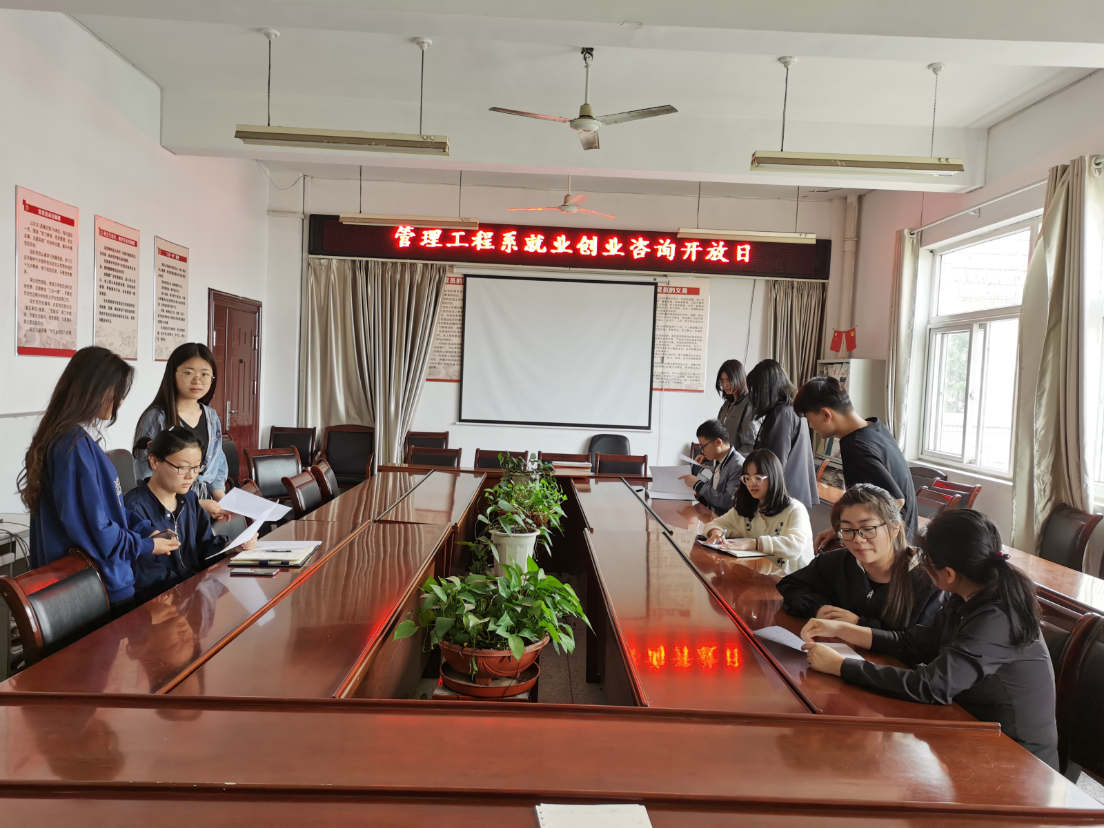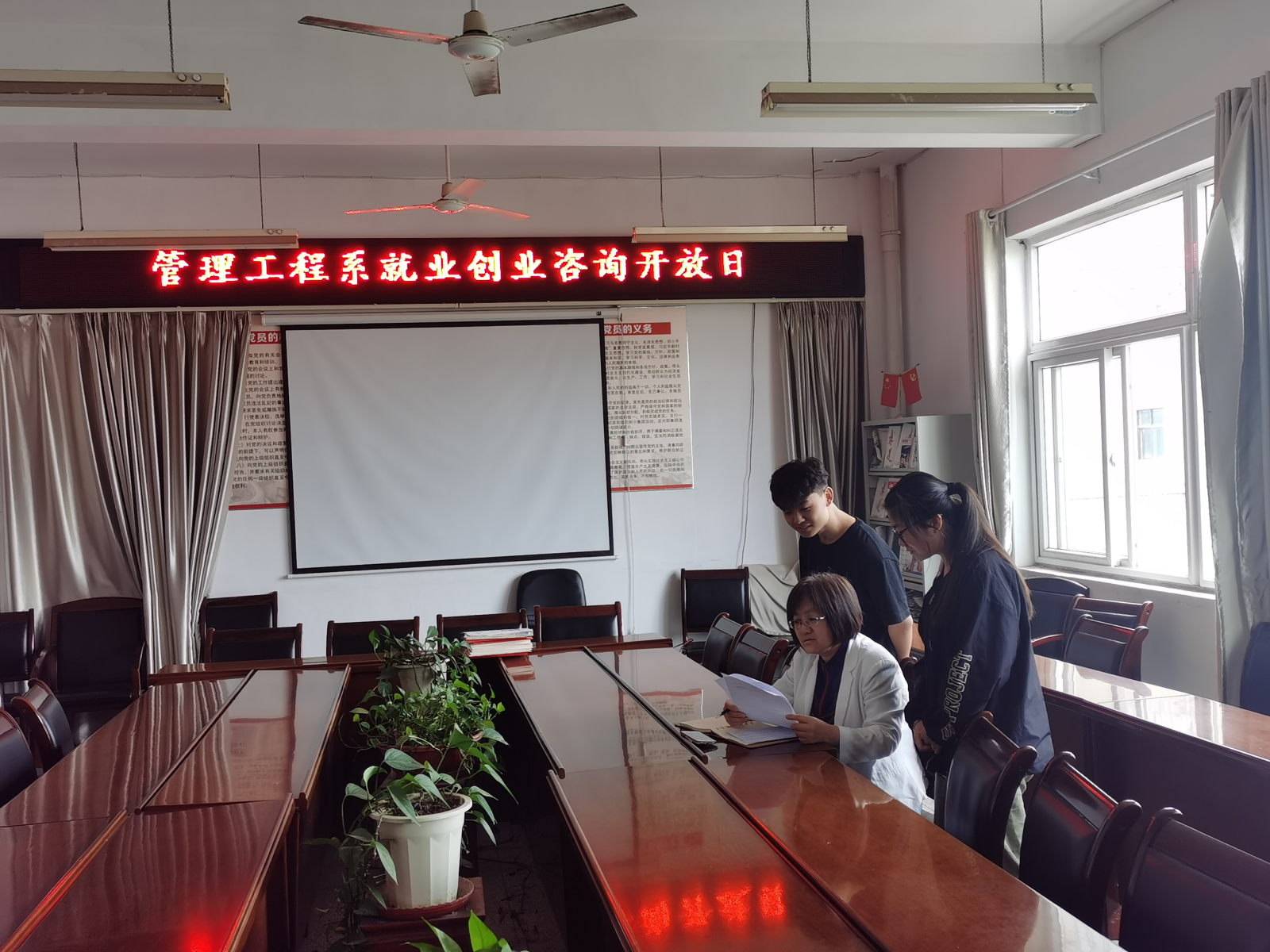 为了更好地帮助同学们做好职业发展规划,促进毕业生高质量就业,5月21日,管理系在系会议室举办“就业创业咨询开放日”活动,安排系部就业指导老师为同学们答疑解惑。系党总支书记汪思曼参与此次活动。