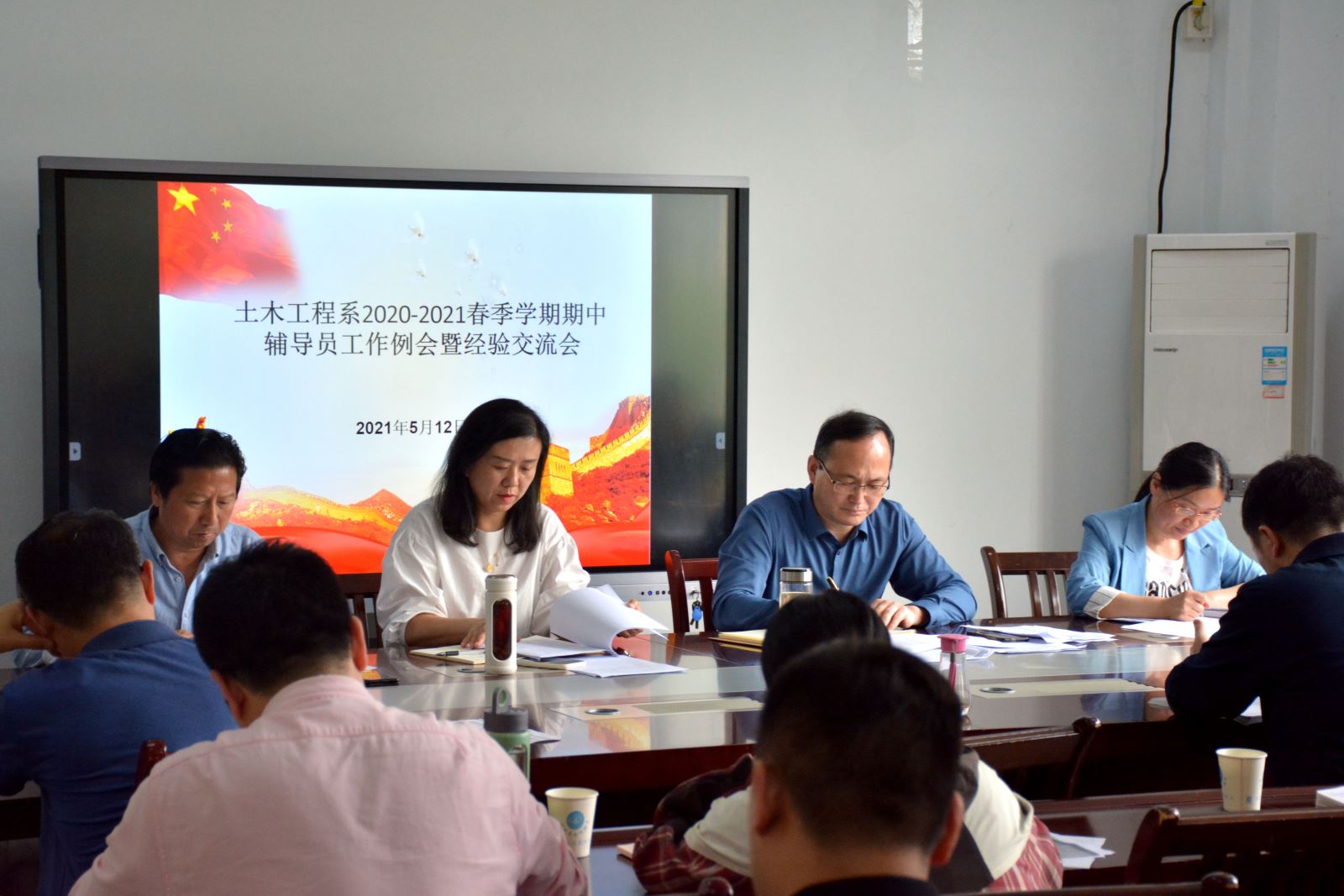 5月12日下午,土木工程系2020-2021年春季学期期中辅导员工作例会暨经验交流会在系会议室召开,系党总支书记邹建华,副书记朱蓉,副主任王守胜以及19、20级全体辅导员参加会议。