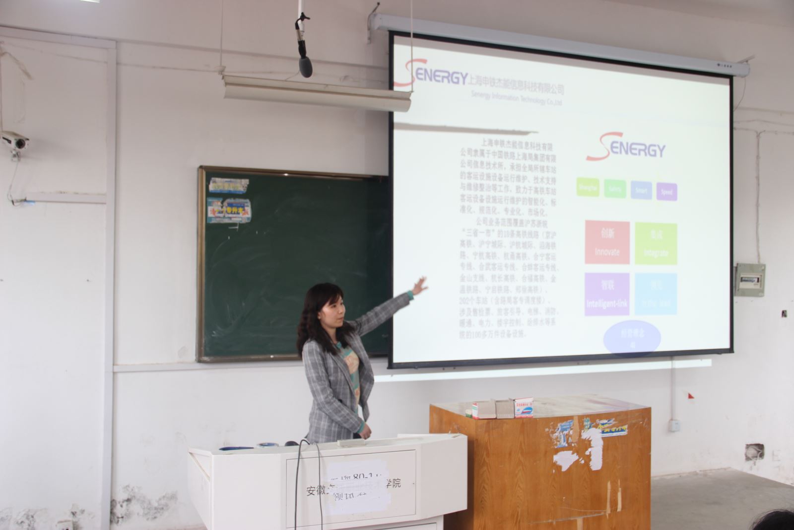 会议开始,中国铁路上海局申铁杰能公司宣讲人从公司背景、岗位要求、工作环境、企业文化、薪资待遇以及企业愿景等多方面进行了讲解,让同学们更全面的了解公司,她表示除了专业技能外,公司最看重的还是学生的综合素养,希望同学们能够有吃苦耐劳,积极进取的精神。在提问环节中,同学们都争相提问工作相关的问题,面对同学们的疑惑,宣讲人都一一耐心解答。