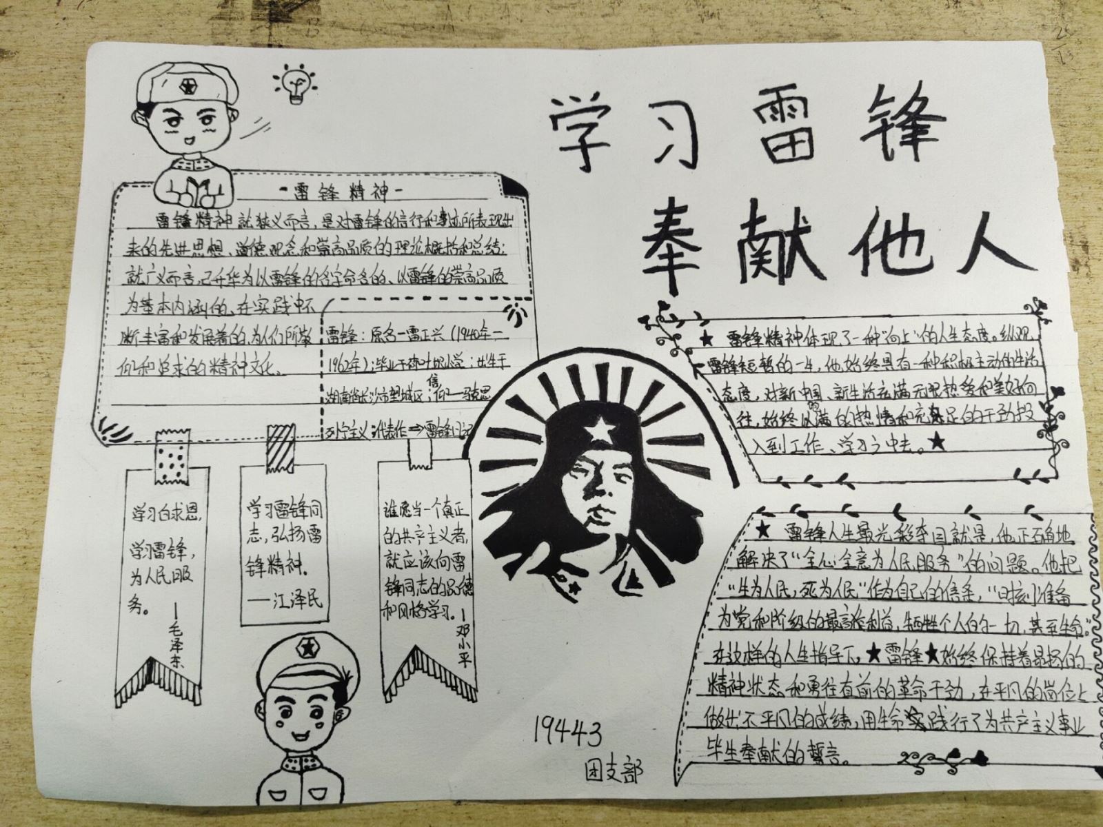 3月中旬,系团总支组织开展了“弘扬雷锋精神”主题手抄报、黑板报比赛,各团支部积极参与,精心设计,充分利用校园宣传阵地,对雷锋生平事迹进行全方位报道,展现雷锋形象,赞扬雷锋的“钉子精神”,歌颂雷锋“全心全意为人民服务”的高尚品质。一幅幅主题鲜明、形式新颖独特的作品,展示了同学们对雷锋精神的感悟和理解,给同学们留下了深刻的印象。
