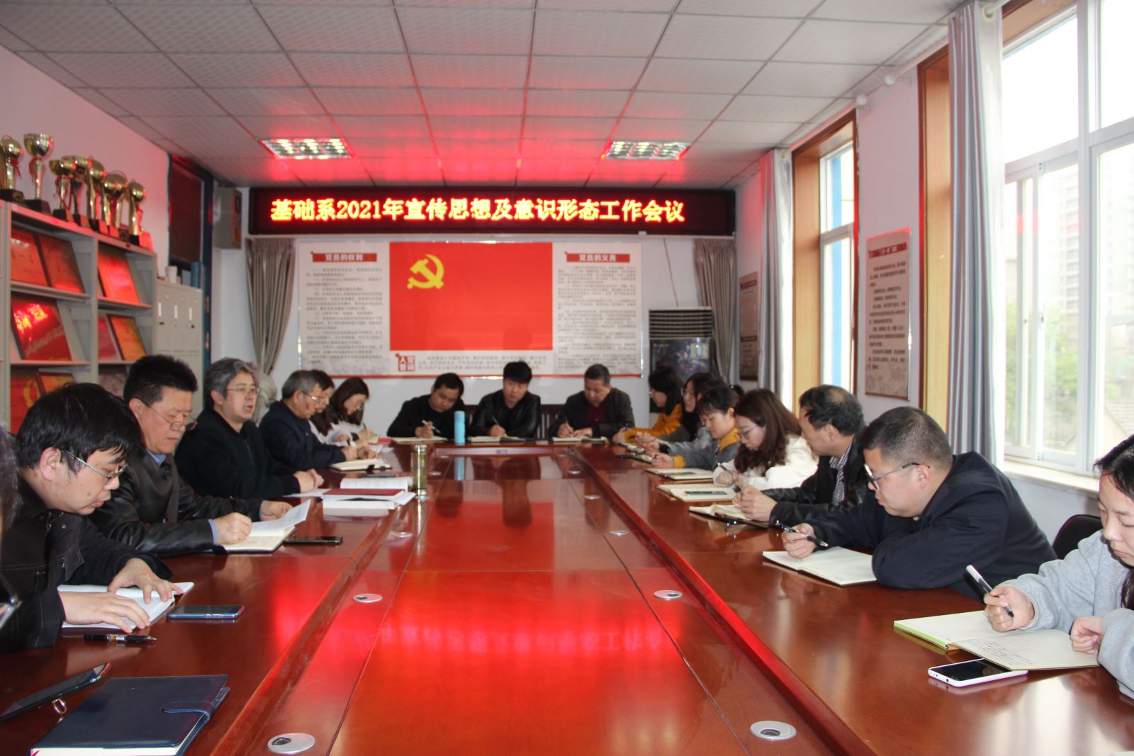 3月31日下午,基础系召开党风廉政建设工作和宣传思想工作专题会议。会议由系党总支书记邵登泰主持,全体教职工参会。