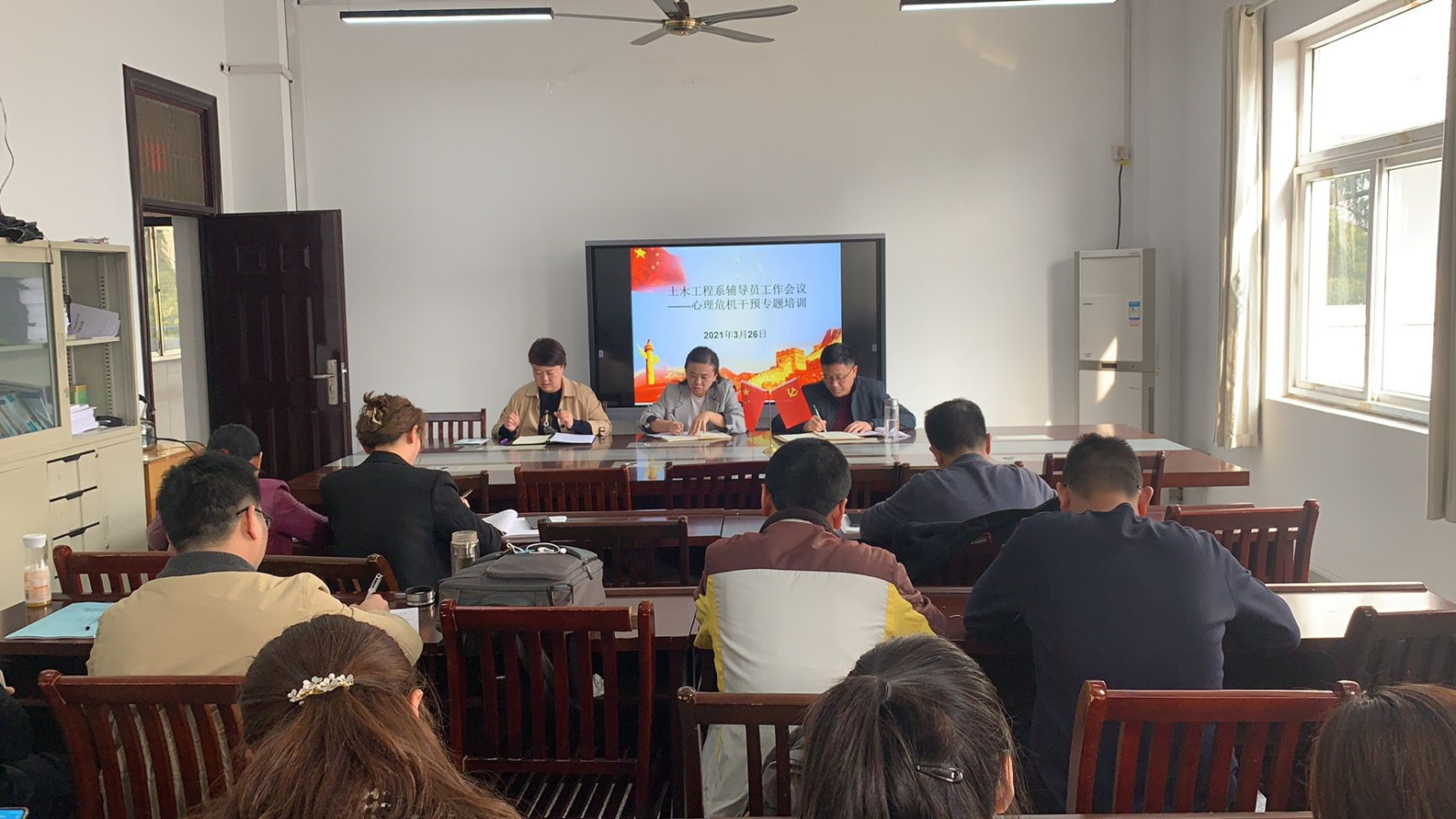 3月26日,土木系召开19、20级辅导员工作会议,邀请学院心理健康教育中心主任鲁晓云进行心理危机干预专题培训。系主任王常才、系党总支副书记朱蓉参加会议。