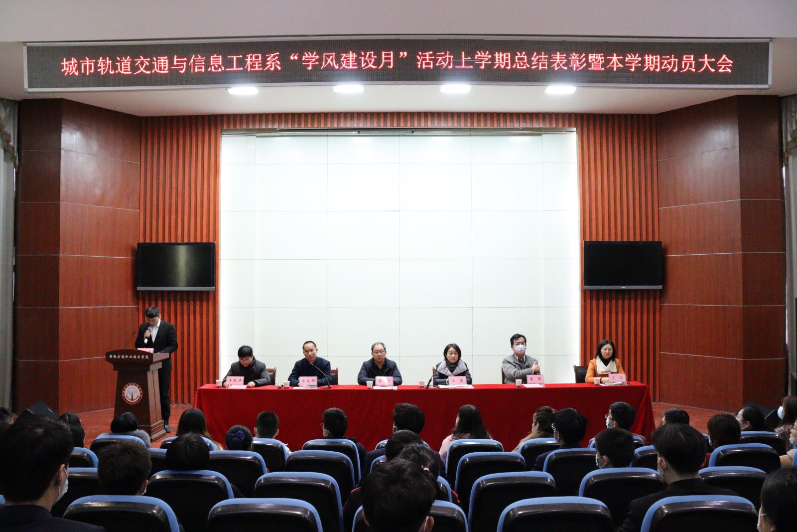 为进一步加强学风建设,探索城信系学风建设常态化有效机制,3月17日,城信系在学院北区八角楼多功能报告厅举行了“学风建设月”活动上学期总结表彰暨本学期动员大会,系领导班子成员、系教学管理人员、学生管理人员、2019级、2020级全体辅导员及学生代表共计150余人参加了大会,大会由系党总支副书记承友明主持。