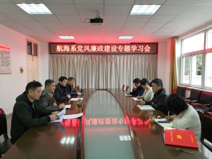 3月19日上午,航海系召开党风廉政建设专题会议。系党支部书记陶权、系主任王东及全体中层干部参加会议。会议由系副主任、支部纪检委员王在高主持。