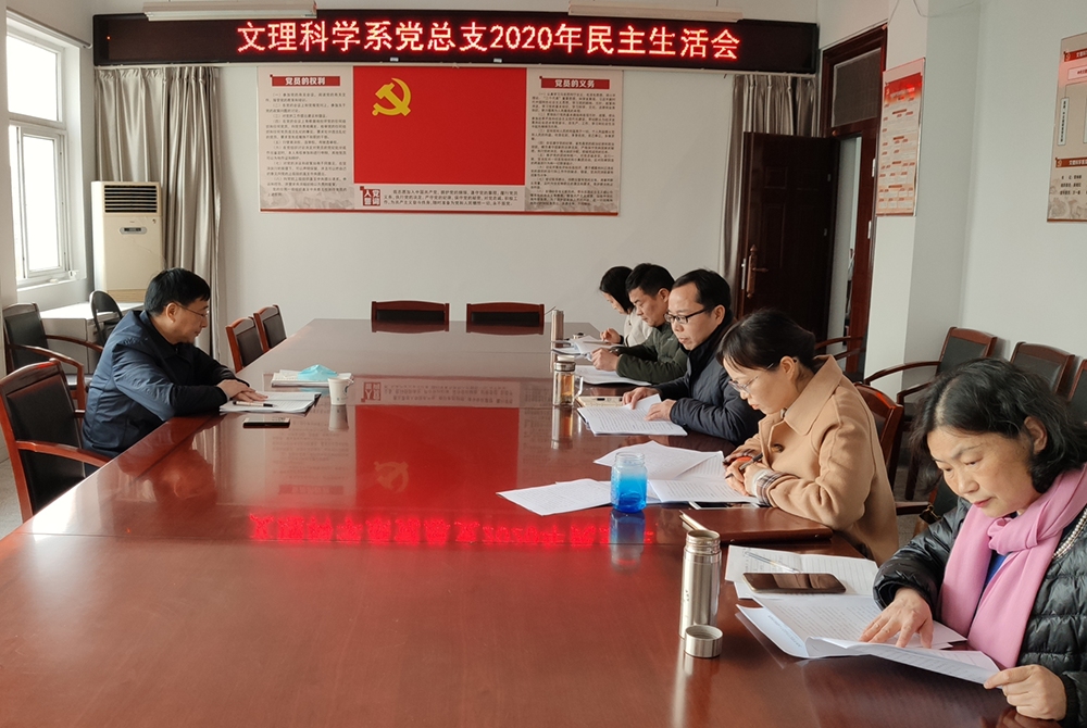 2月3日下午,文理科学系党总支召开2020年度民主生活会。院党委委员、副院长王丰胜到会指导。会议由系党总支副书记、副主任(全面主持工作)昌希灿主持。党总支副书记、副主任王珏及总支委员参加会议。