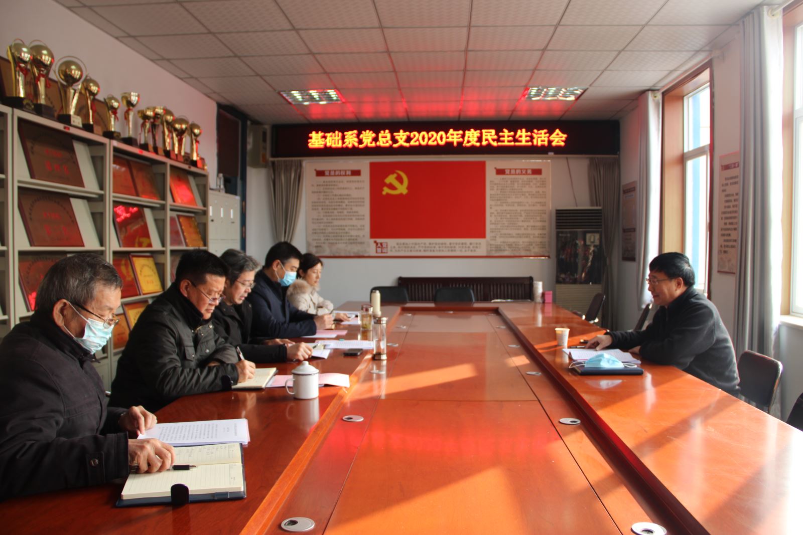 为深入学习贯彻习近平新时代中国特色社会主义思想,学习贯彻党的十九届五中全会精神,根据院党委统一部署和要求,2月2日上午,基础系党总支召开民主生活会。副院长王丰胜到会指导,系党总支书记邵登泰主持会议,党总支成员参加。