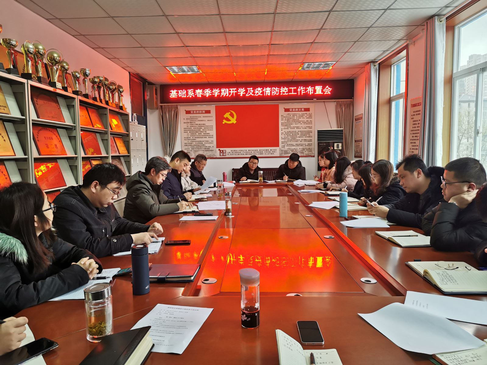 2月26日下午,基础系召开春季学期开学及疫情防控工作布置会,系主任杨柳青主持,全体教职工参会。