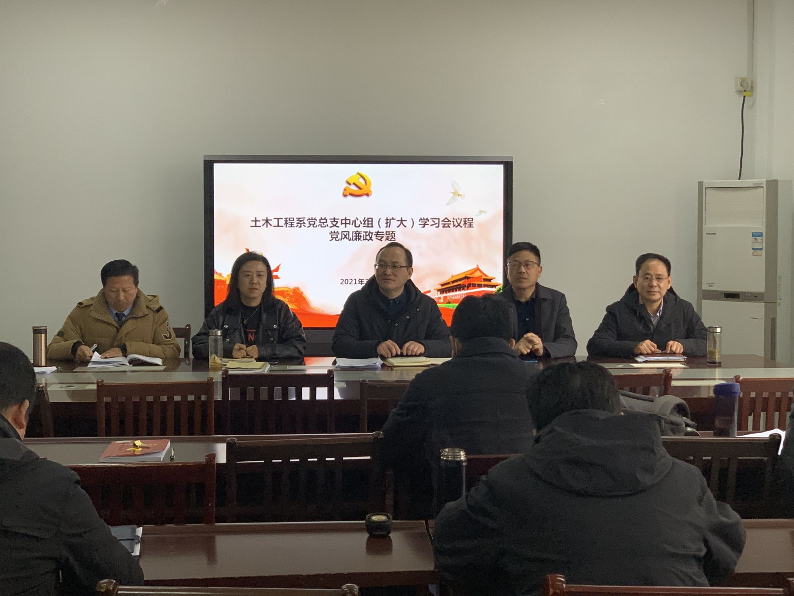 3月3日下午,土木工程系党总支副书记、纪检委员朱蓉主持召开中心组(扩大)党风廉政专题学习会。系部各领导干部、支部书记、支部纪检委员、教研室主任参会。