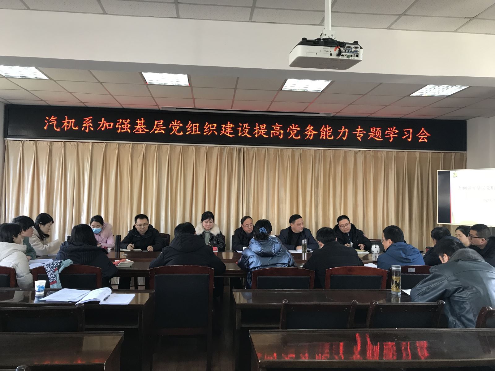 为加强党的建设,持续做好巡视整改工作,1月13日,汽车与机械工程系党总支组织全系党务工作者开展为期一天的“加强基层党组织建设,提高党务人员工作能力”专题培训学习会。院纪委书记陈明到会指导。汽机系总支委成员、各支部委员、副科以上党员干部参加培训学习会。